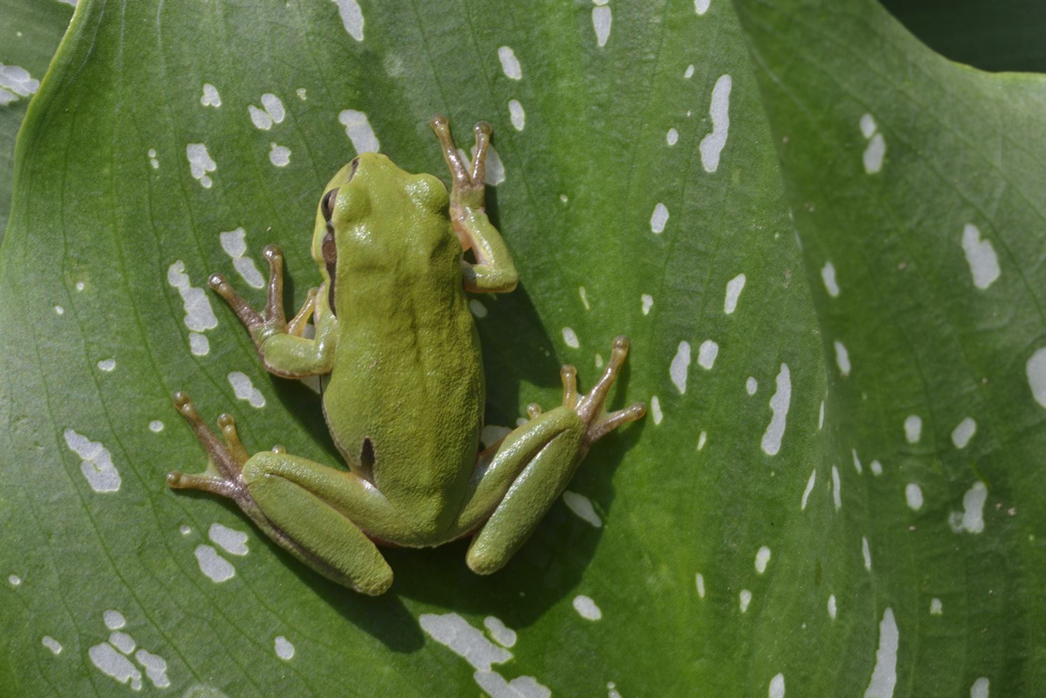 Een boomkikker schuilt voor de hitte in de kelder van