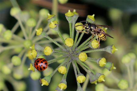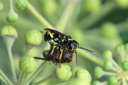 Marcel Gybels ging vandaag op jacht naar roofinsecten die graag vertoeven op de bloeiende grondklimop. Horzels, roofwespen, gewone wespen, ... ze zijn allemaal op de afspraak.35825