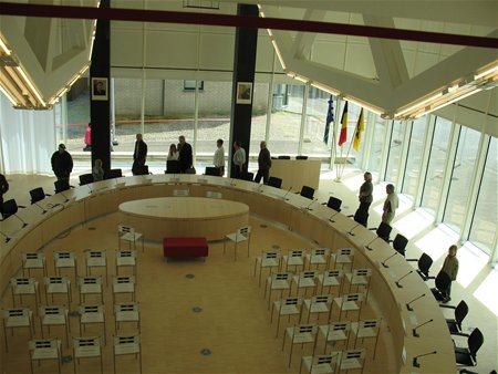 Veel inwoners zijn dit weekend een kijkje komen nemen in het nieuwe gemeentehuis. Zaterdag kwamen de personeelsleden met hun familie en de 75-plussers, alles samen zowat 600. Zondag was het heel de dag opendeur voor de rest van de inwoners. Een kwartier voor de opening zondagochtend stonden er al zowat 100 belangstellenden voor de deur. Heel de dag door waren er bezoekers die het uitgestippelde traject volgden, van in de raadszaal, langs de verschillende diensten tot in het bureau van de burgemeester of secretaris. Als afsluiter kreeg iedereen aan de tentjes op het dorpsplein een consumptie aangeboden. UPDATE In totaal zijn er zondag meer dan 2300 bezoekers geteld. In twee dagen betekent dat een kleine 3.000.