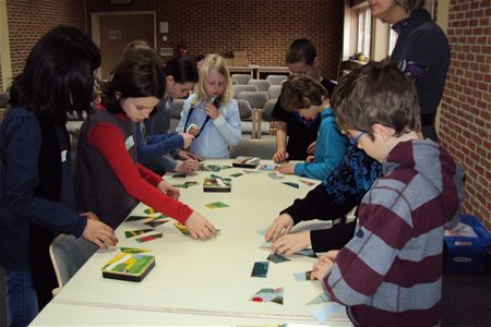 Op 21 maart start de Jeugdboekenweek officieel maar vandaag al namen heel wat kinderen deel aan een workshop. Daarin werd ook het thema van de jeugdboekenweek verklapt, het gaat namelijk over geheimen. De jongens en meisjes vertrouwden vandaag alvast hun geheim toe aan een 'geheimenboek'. En Sabine de Leesmeermin tovert allerlei geheimen uit boeken, leest die voor aan de kinderen die op hun beurt weer geheimen aan boeken doorgeven. Kunt ge nog volgen? (Meer foto's van Michel Gerits)7073