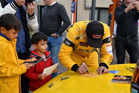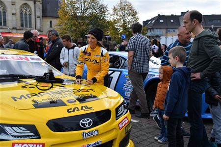 De deelnemers aan de NASCAR zijn in de late namiddag in karavaan van het Circuit naar het centrum van Zolder gereden. De parade eindigde in een static show op het Heldenplein Onderweg was ook heel wat belangstelling maar vooral aan het gemeentehuis kwamen nogal wat fans opdagen. Er zijn heel wat foto's en selfies gemaakt en handtekeningenjagers kwamen ook aan hun trekken. (meer foto's van Michiel Reynders)43459