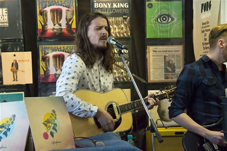 Fonny Jans kan op deze Record Store Day met grote namen uitpakken in de Pick Up en dus is het al sinds vanmiddag erg druk aan Suska-Berg. Het begon dan ook sterk met een erg gesmaakt optreden van Martinus en nadien volgden de bands en artiesten elkaar in een strak tempo op. Ondertussen klikten de fototoestellen onophoudelijke en werden ook albums gesigneerd, want er lag nogal wat gloednieuw materiaal in de winkel. En het vinyl blijft het ondertussen maar goed doen. Ook morgen zal het nog druk zijn in de Pick Up want vanaf 14 uur treden verschillende artiesten van het Fons-label op. (foto’s Gust Put)20164
