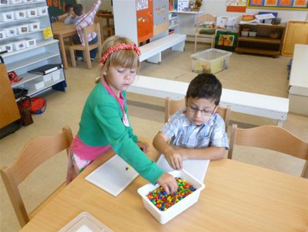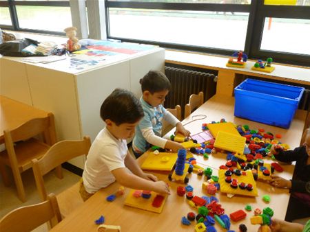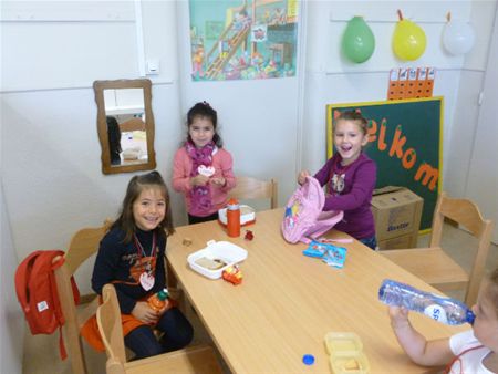 Ook in kleuterschool Pagadder in Berkenbos was de eerste schooldag een bijzonder toffe boel. Niet alleen konden de kleuters nieuwe vriendjes maken en de klasjes verkennen, ze mochten ook dansen op muziek en leuke spelletjes spelen. (foto's Leentje Elsen) 11308