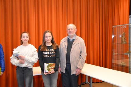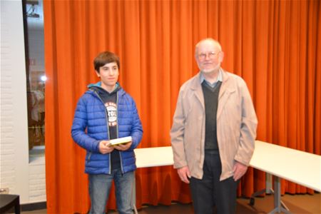 Erg veel volk vanavond in de bibliotheek voor de prijsuitreiking van Junior Journalist, de wedstrijd waarmee het Davidsfonds jaarlijks jong schrijftalent in de scholen van Heusden-Zolder bekroont. De aanwezigen werden getrakteerd op optredens door de leerlingen van de afdeling woord van de academie van Beringen. Het thema luidde dit jaar 'Vriendschap' en de 5-koppige jury had de handen vol met 74 inzendingen uit 5 verschillende scholen. de grootste groep uit het vijfde en zesde leerjaar. De eerste prijs in reeks 1 (5de en 6de leerjaar) ging naar Lize Pirard (Sint-Jan Bechmans Viversel). Overigens waren de eerste 8 allemaal leerlingen van Myriam Orens van Viversel: Senne Claes, Lars Fisette, Iza Bulterijst, Keanu Cams, Ghune Palmers, Sarah Castro en Tristan Vanheel. Tenslotte hield Lotte De Smedt de eer hoog van de vrije basisschool Bolderberg. Drie winnaars waren er in reeks 2 (1ste en 2de jaar secundair onderwijs): eerste Britt Vermijl, tweede Stiene Maes en derde Ferre Ceustermans, allen leerlingen van het Sint-Franciscuscollege. (foto's Marina Poelmans)39393