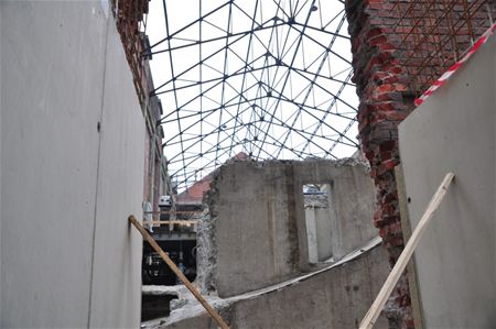 Ondanks de problemen met het winterweer zijn de werken aan het ophaalgebouw al goed opgeschoten. Er zijn al heel wat muren gemetseld, er is beton gestort, enkele originele delen zijn gerestaureerd, ... hoe dan ook is er uiteraard nog heel wat werk voor het CVO de verhuiswagens kan laten aanrukken, maar het begint vorm te krijgen. (meer foto's van Marina Poelmans)12795
