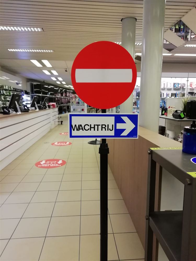 Bij electrozaak Exellent in de Koolmijnlaan wordt de wachtrij binnen georganiseerd. Ze moeten dus niet buiten staan aan te schuiven, wat niet prettig zou zijn bij regen. Aan de wachtrij worden ze persoonlijk verwelkomd en kunnen dus meteen geholpen worden, hetgeen hun tijd in de winkel verkort. Binnen in de winkel is éénrichtingsverkeer uitgestippeld zodat de klanten elkaar niet kruisen.