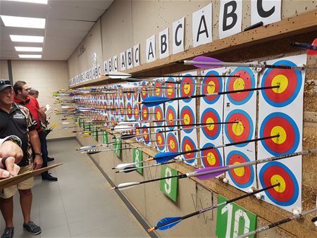 Bij de doelschuttersvereniging Sint-Barbara had vanavond een Vlaamse schutterswedstrijd plaats. Daarvoor daagden heel wat deelnemers uit de verre omgeving op. Daarbij komt het erop aan om met drie pijlen vanop 18 meter een zo hoog mogelijke score te realiseren.(foto's Kristof Cuppens)