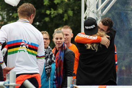 Normaal zouden de WK-finales vanavond live op Sporza te zien zijn geweest, maar aan de Reyerslaan moesten ze noodgedwongen kiezen voor samenvattingen. Vanmorgen was immers onder druk van de weersomstandigheden en na vele besprekingen, heel het programma vervroegd: kwalificaties in ijltempo en de finales die al rond 1 uur van start gingen. Om 2 uur zat het erop en waren de wereldkampioenen gekend, maar net als het talrijke publiek waren ook zij kletsnat. Jammer voor de nieuwe wereldkampioenen maar nog voor de ceremonie gingen de meeste toeschouwers al richting uitgang. De Nederlanders mochten bij de elite-mannen juichen met Nick Kimmann als nieuwe wereldkampioen, zilver voor zijn landgenoot Jelle van Gorkom en brons voor de Zwitser David Graf. Gouverneur Herman Reynders mocht mee de regen trotseren om het eremetaal te overhandigen. Bij de dames ging de regenboogtrui - net als in de tijdrit - naar Zuid-Amerika maar niet de Colombiaanse nummer 1 maar wel de Venezuelaanse Stefany Hernandez won, voor de Australische Caroline Buchanan en de Deense Simone Christensen. Wie vanavond nog naar de after-party in Hasselt zal afzakken, is niet duidelijk. De meeste deelnemers en hun entourage hebben ondertussen afscheid genomen en afspraak gemaakt voor volgend jaar in Colombia. Ondertussen hebben ze aan het Circuit nog een weekje opruimwerk. (meer foto's van Tony Sempels)22176