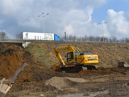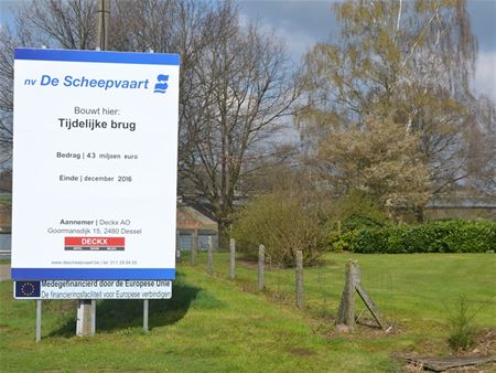 De voorbereidende werkzaamheden voor de bouw van een tijdelijke brug over het Albertkanaal - om de bouw van een nieuwe brug van de snelweg mogelijk te maken - draaien in Viversel ondertussen op volle toeren. Zo is de afdruk waar de brug zal rusten, al dudielijk te zien. Op de voormalige Dossche-site wordt de werf ingericht. De omleiding wordt pas later van kracht. (foto's Lode Beylemans)24925