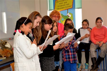 18 kinderen hebben vanmiddag in het Zebrahuis hun diploma ontvangen van Het Voorleescollege waaraan ze de afgelopen maanden hebben deelgenomen. Het zijn ‘journalisten’ van kinderkrant De Crocodils, die zich met veel overgave op het voorlezen hebben gestort. De meeste kinderen zijn van anderstalige afkomst, maar het voorlezen gebeurde in een heel aantal talen: Nederlands, Turks, Engels, enz. Dat hebben ze vanmiddag bij de feestelijke diploma-uitreiking nog eens laten horen, ze lazen onder meer verhaaltjes voor die hen door de mensen van Het Berenhuis werden aangereikt. Heel het project kreeg financiële steun van ‘Hart voor Limburg’. Daarom was ook voorzitster en ere-gouverneur Hilde Houben-Bertrand aanwezig en zij toonde zich onder de indruk van de voorleescapaciteiten van de kinderen. De diploma’s werden vervolgens overhandigd door schepen Funda Oru. Voor de voorleesjournalisten zit het werk er trouwens nog niet op, zo zullen ze onder meer op 24 mei in het Weyerkesbos te horen zijn. (meer foto’s)20078