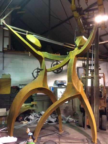 In Houthalen wordt vandaag het vredeskunstwerk onthuld dat de Heusdense R&R Kunstsmeden de afgelopen maanden hebben gemaakt. Robin Das en Raf Nulens kregen de opdracht voor een kunstwerk naar aanleiding van 100 jaar Wapenstilstand. Het werd ‘Alors on danse’, 2 dansende figuren in gestileerde vorm met een subtiel vredesteken als gezichtslijnen. Na de bevrijding werd er immers gedanst, tijdens feesten wordt er gedanst , als we gelukkig zijn dansen we, om problemen te vergeten dansen we, … De beelden stralen de vreugde uit van mensen na een zware oorlogsperiode, maar zwaaiend met een boeketje margrietjes schreeuwen ze ook de hoop op een betere toekomst uit. Het corrosief beeld - waarvan de roestkleur zal evolueren met de tijd - maakt de verbinding tussen een ultramodern NAC en het oude industriële mijnerfgoed met de nieuwe technologieën.43361