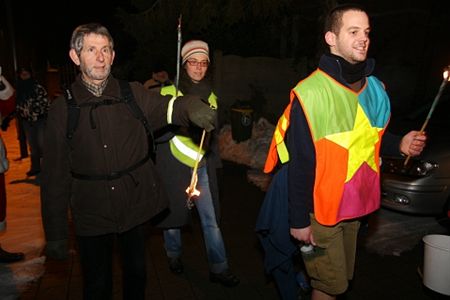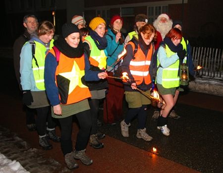 Sinds vanavond is het peacelight of vredeslicht in Eversel. Het werd door de scouts van Eversel van Hasselt naar Eversel gebracht, nadat het eerder vanuit Wenen naar ons land werd overgebracht door onder meer Dorien Wijnands en Anke Swinnen, daarvoor was het vanuit Bethlehem vertrokken. De scouts hadden er een fikse voetmars vanuit Hasselt voor over, ze kregen aan de kerk dan ook een warm welkom van de parochianen en de deelnemers aan de kerstwandeling (foto's Rudi Coomans)