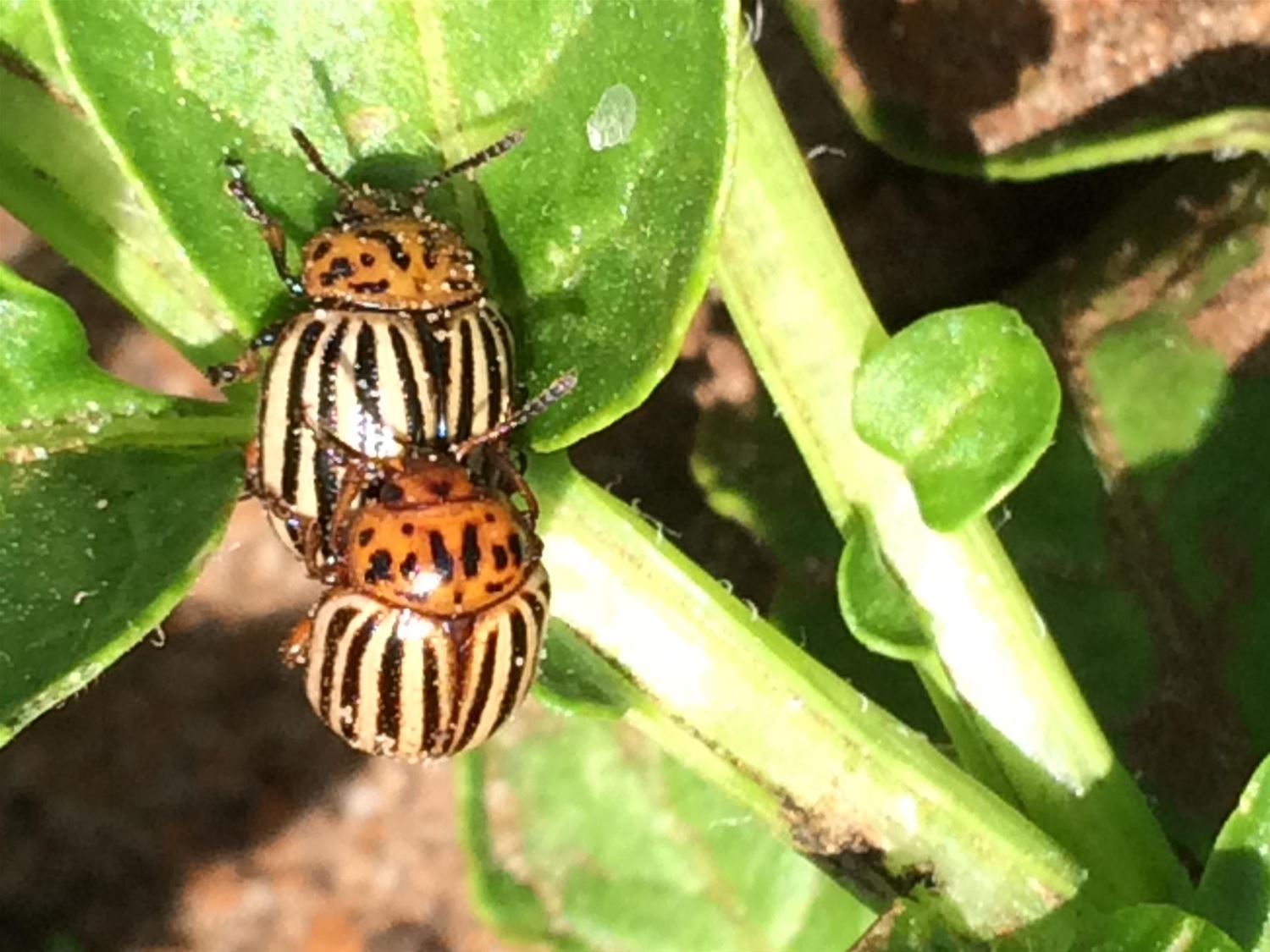 Ondanks de droogte waarbij het erg moeilijk is om de gewassen voldoende water te geven, gaat het toch behoorlijk goed met de dorpstuintjes. De courgetten staan er al goed op. Ondertussen komen ook vriend en vijand op bezoek. De coloradokever werkt ter plekke zelfs aan het nageslacht, dat kan een bedreiging voor de aardappeloogst vormen. De lieveheersbeestjes zijn dan weer de ideale bestrijders van de bladluis en ander ongedierte. 55031
