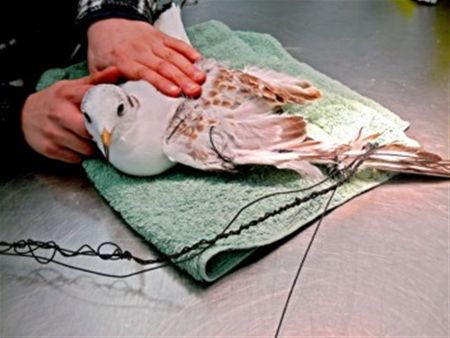 Watervogels in nood door nylon draden
