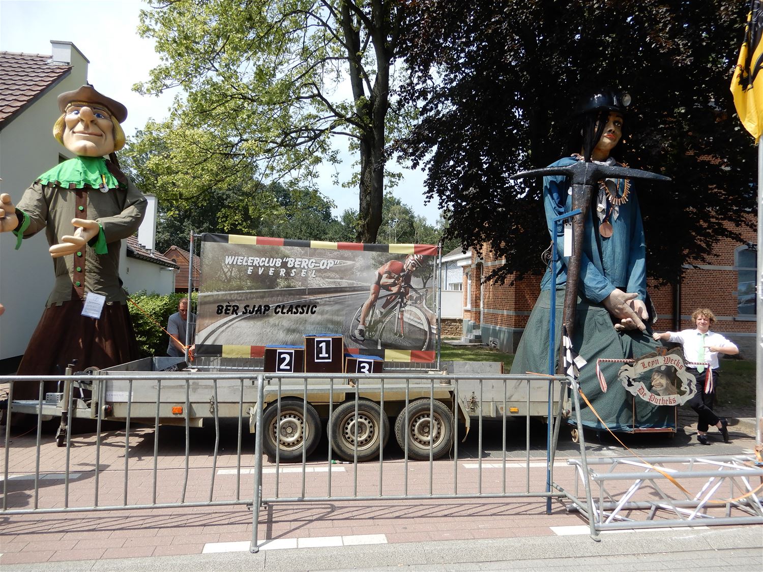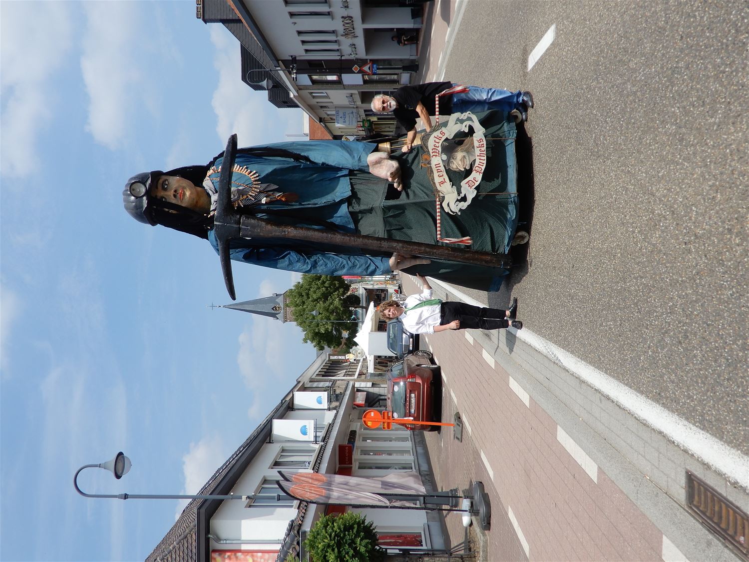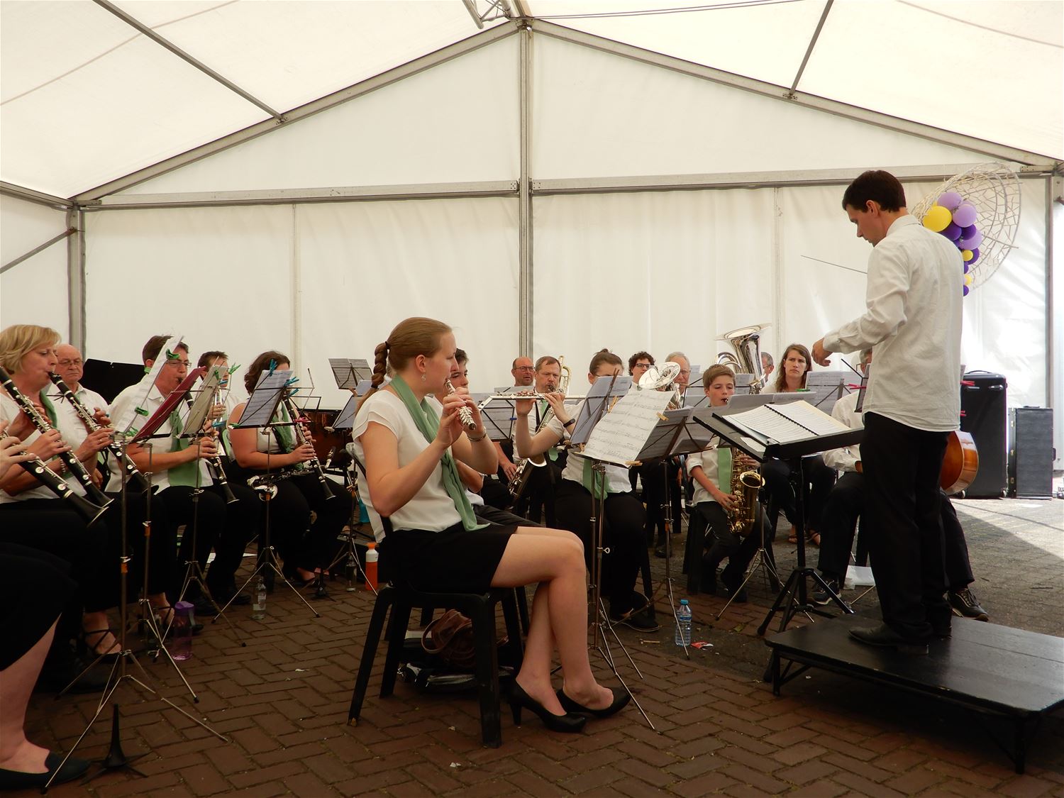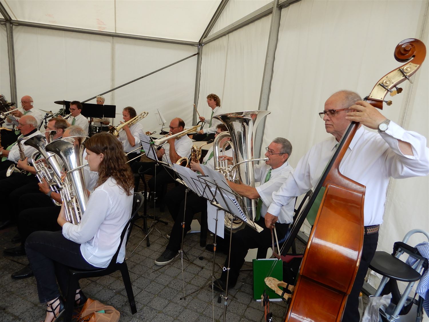 De Koninklijke Harmonie De Verenigde Vrienden gaf vroeg na de middag een aperitiefconcert naar aanleiding van de kermis. De harmonie had een stevig programma ingeoefend en gaf een kwalitatief hoogstaand concert. Jammer dat bij deze zomerse omstandigheden maar een 20-tal toehoorders opdaagde. De reuzen luisterden mee en trokken nadien naar het wielerpodium. 47286