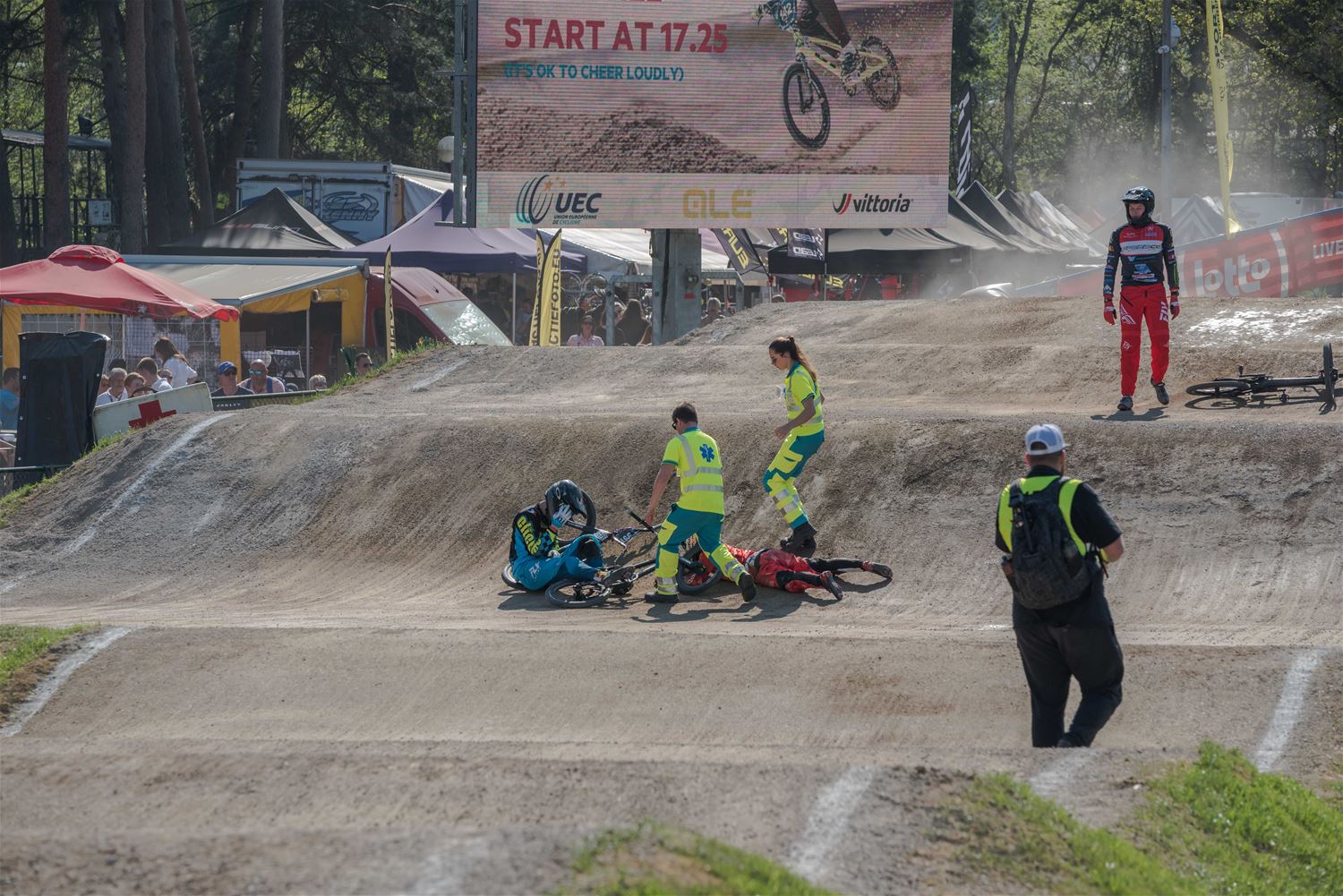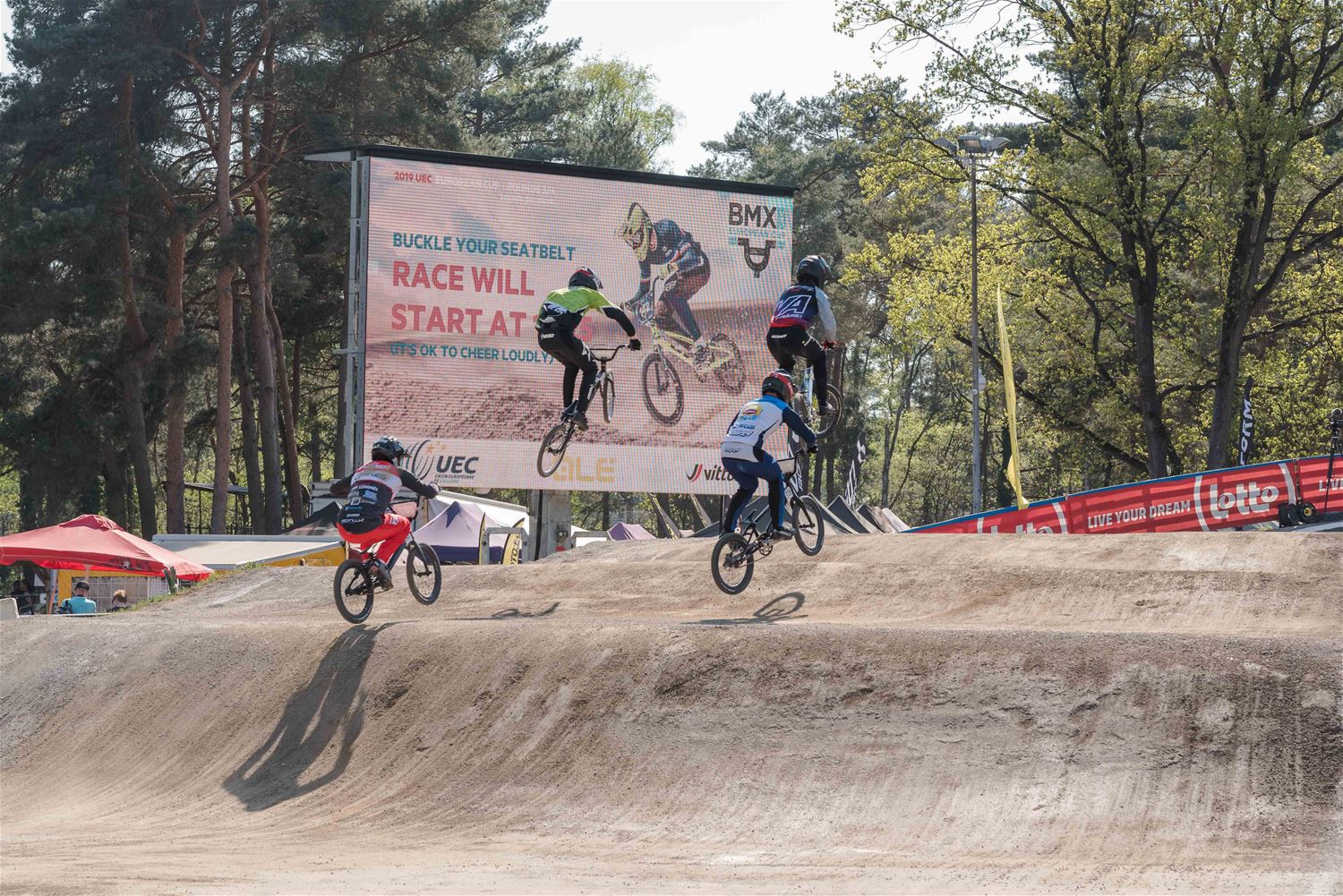 Het was weer een drukke dag op de BMX-track met heel wat Europese topprestaties. Nu stonden de races voor de 4de manche van de Europacup op het programma. Bij de Boys 7 ging in de finale de zege naar de Brit Harry Donald, onze landgenoten Rune Vansummeren en Liam Magiels waren 4de en 7de. De Boys 8-finale is gewonnen door de Lithouwer Bruno Vanags, ook daar één Belg: Alexander De Vrij op 5. Bij de Boys 9 won de Zwitser Jules Kasper voor onze landgenoot Jayden De Locht, Jens Gijbels werd 7de. Nederland boven in de Boys 10 met onder meer goud voor Deon Goorman, Thijs Wijnants was 5de en nog een Belg, Elias Hellebooge op 8. Bij de Girls 9 ging de overwinning naar Tsjechië, naar Stepanka Fremlov, Eline Wynants werd 6de en Nora Spooren 8ste. Een Franse zege bij de Cruisers 17-29 voor Dupont Thibault. Nederland boven bij de Cruisers 30-39 met Rick Bok op 1, en de Belgen Evan De Luca, Michael Besonne en Gorden Martin op 5, 6 en 8. Goud bij de Cruisers 40-44 was voor de Fransman Martial Pierru. 2 Belgische finalisten bij de Cruisers 45+ met Danny Pinxten op 6 en Tonny Strobbe op 7, voor de rest werd die reeks door de Fransen gedomineerd met Jean Renaud Ducos de Lahitte als winnaar. De Girls 8 werd gewonnen door de Nederlandse Hailey De Wit met de Belgische Delphine Beirinckx op 5. De Girls 10 is gewonnen door de Nederlandse Lieke Van der Aa, de Belgische Mart Leyssens werd 8ste. Morgen zijn er nog races. (foto’s Ann Jordens)45543