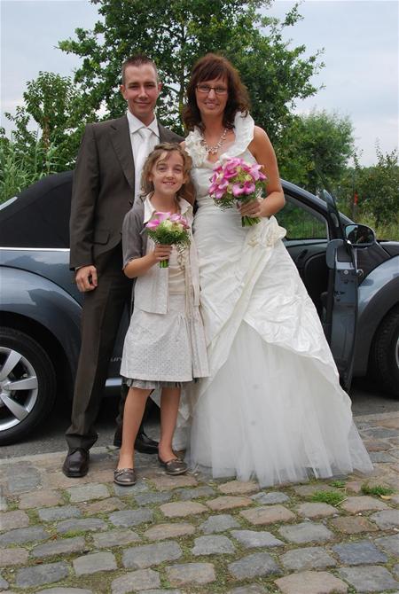 Jenny heeft ondertussen tientallen telefoons en brieven achter de rug, ze heeft weet van andere schadegevallen bij hetzelfde bedrijf en heeft de zaak aanhangig gemaakt bij de geschillencommissie van de textielsector die zich nog moet uitspreken. Maar haar kleed heeft ze nog steeds niet terug. Ze denkt dat het misschien terecht is gekomen bij iemand in de regio Heusden-Zolder en hoopt via deze weg alsnog haar trouwkleed terug te vinden. Op de foto hierbij draagt ze het kleed. Wie het herkent, mag reageren via onze redactie.2935