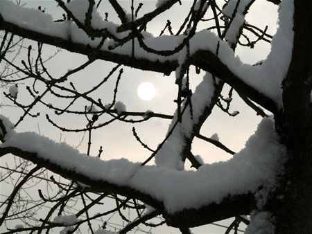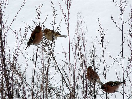 In Boekt vond het hondje Jozefien twee speelmaatjes om de winterpret te delen, onder het toeziend oog van een stel hongerige vogeltjes. (foto's Leen Beunens)6396