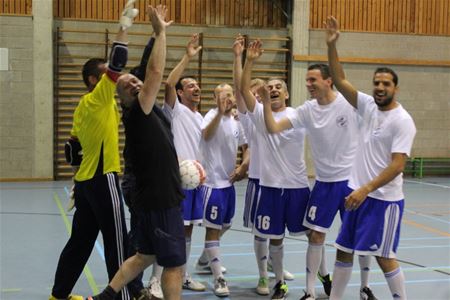 Febelco, de groothandelaar-verdeler van geneesmiddelen, organiseerde in Zemst de eerste editie de van Febelco Cup: een voetbaltornooi tussen alle vestigingen. Zolder vaardigde een ploeg werknemers af die nog nooit samen een potje gestampt hadden. Wellicht daarom kreeg het in zijn eerst wedstrijd al een vroeg tegendoelpunt van Frameries, dat duidelijk beter opgewarmd was. Maar Zolder ging erop en erover ... de Walen kwamen weer langszij, maar dan veegden de Limburgers de tegenstand van de vloer met 4 goals in 3 minuten; eindstand 7-2. Met Izegem was de volgende opponent ook niet van de poes, maar Zolder wist 3 maal door de sterke defensie te breken, terwijl keeper Stein aan de overzijde de netten schoon hield: 3-0. Vestiging Olen was gewaarschuwd en was niet bereid tot ook maar één cadeau. Een strategische wissel van de coaches bracht verandering op het juiste moment, invaller Musti scoorde na 10 seconden, de trein was vertrokken en Olen vermeed nipt een forfaitscore: 5-1. Eenzelfde uitslag tegen Sint-Niklaas B maar toen was Zolder al zeker van de finale tegen Sint-Niklaas A. Die finale werd dubbel zo lang, 2 x 20 minuten, een uitputtingsslag dus maar de komst van de dagelijkse leidinggevenden was duidelijk een hart onder de riem. Sint-Niklaas A bleek al snel een maatje te klein en bij de rust stond het al 6-0. Nadien kon of mocht de tegenstander nog even twee doelpunten naderen, maar de supporters stuwden het sterke Zolderse collectief naar een 9-2. En dus staat de wisselbeker nu een jaar lang te blinken in de vestiging in Zolder. (meer foto's van Tony Sempels)27548