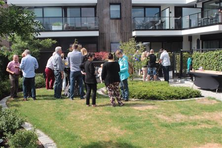 Buurtbarbecues zijn niet alleen gereserveerd voor straten, ook in Residentie De Kapelanijen hebben ze op dat vlak een nog jonge traditie. Er waren wel een kaarske en schietgebedje nodig om de weergoden gunstig te stemmen, maar iets over drieën wierp dat toch zijn vruchten af. Na het welkomstwoord zorgde Leen Breemans zorgde weer voor de vrolijke doelzaknoot, ze had er in een jaar tijd trouwens al aardig wat (noten) bij geleerd. Er werd heel wat bij geklets want ook in een appartementsgebouw komen buren elkaar niet dagelijks tegen. (foto's Greta Mullens)34765