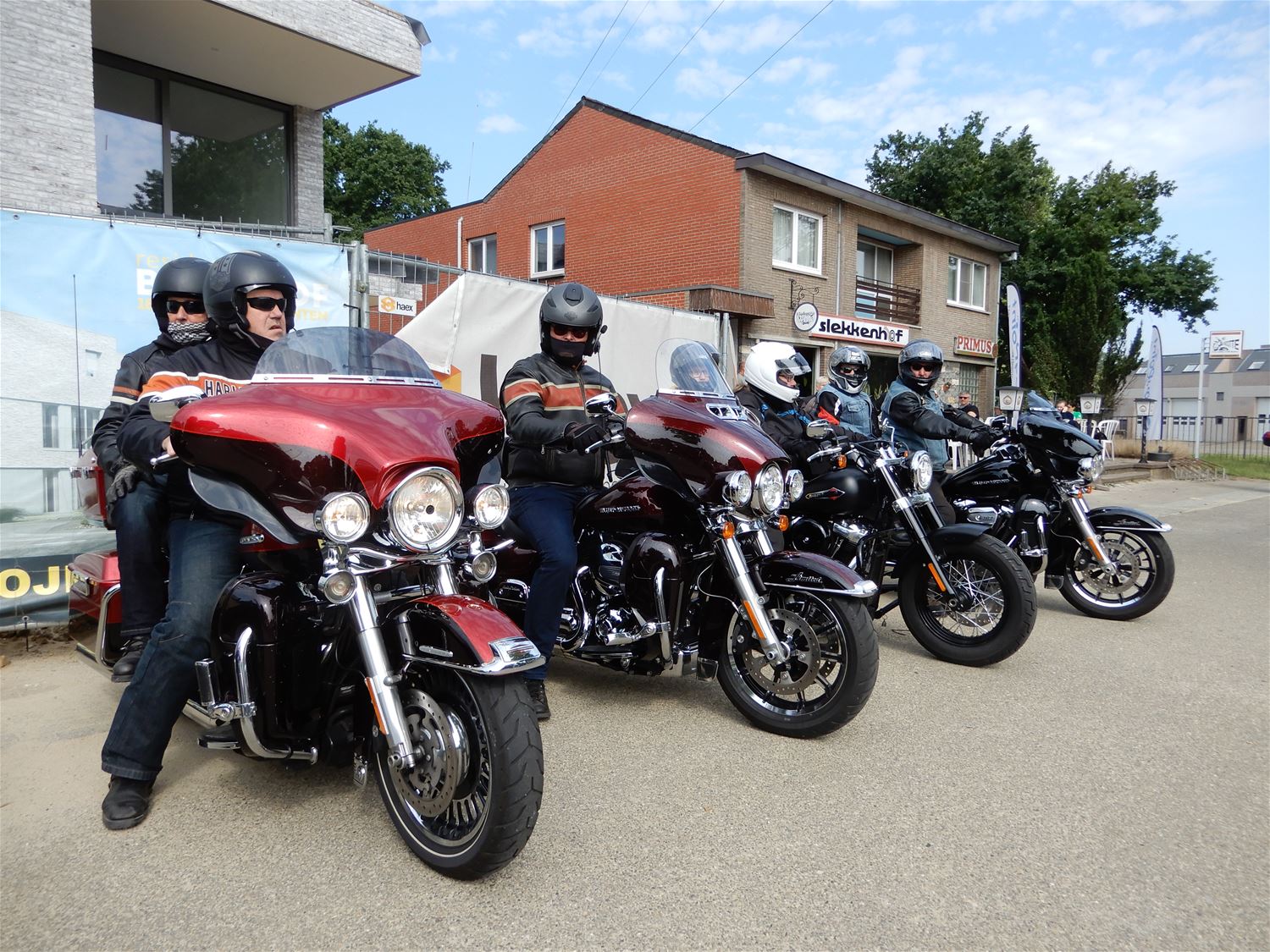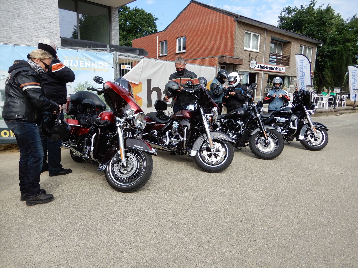 Het 38ste Pinkstertreffen van MC Mascotte startte onder een blakende zon, het is ooit anders geweest. Om 10 uur waren vanuit ’t Slekkenhof dan ook al 60 motoren vertrokken voor een toerrit van zowat 150 km. De organisatoren van MC Mascotte maken er ieder jaar een erezaak van om hun deelnemers een mooi parcours aan te bieden, over goede wegen en waar bovendien ook nog wat te zien valt. De verwachting was dat het aantal deelnemers nog flink zou aanzwellen. (foto’s Julien Maebe)