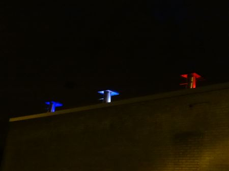 Zoals aangekondigd kleurt het zwembad in Zolder vanaf vanavond blauw-wit-rood als teken van solidariteit met Frankrijk. Jeroen Bosmans zorgde voor de lichtinstallatie, waarmee zowel de ramen als de startblokken op het dak worden belicht. (foto's Julien Maebe)23327