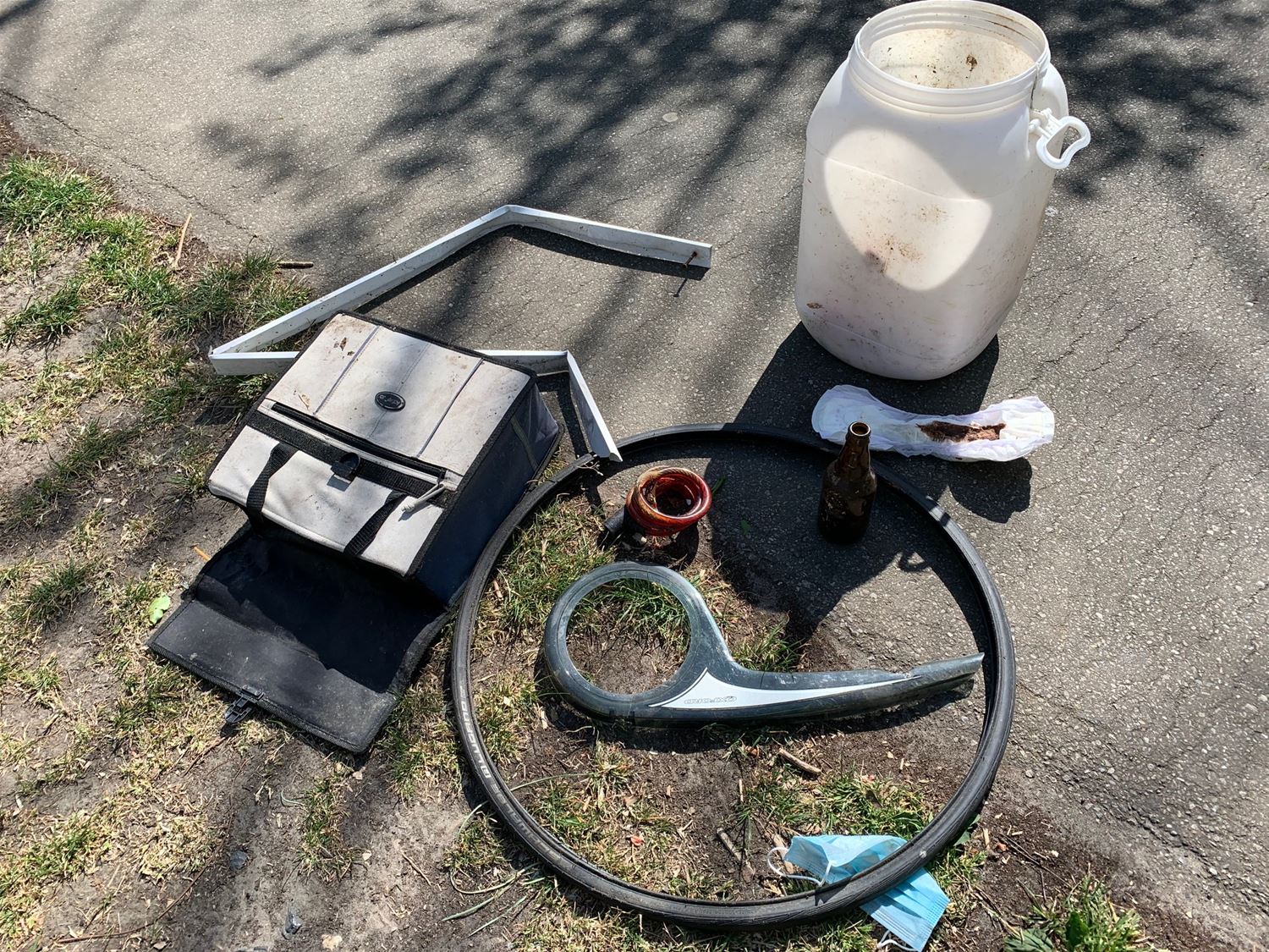 Leden van de dorpsraad Heusden en de Fietsersbond hadden al langer beloofd om de omgeving van de zitbank in de buurt van de Zolderseweg langs het fietsroutenetwerk op te ruimen. Dat is een geliefkoosde plek van hangjongeren. Het afblazen van de actie straat.net stak stokken in de wielen. Vandaag hebben ze dat dan toch gedaan, weliswaar maar met drie leden om de sociale distancing te kunnen respecteren. Er was heel wat werk, want heel de buurt ligt bezaaid met zwerfvuil en soms de meest merkwaardige spullen. (foto's Julien Maebe)53582
