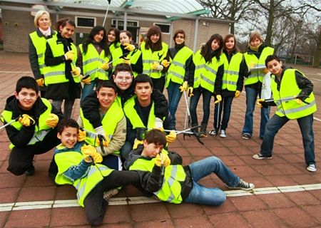 De leerlingen van basisschool 't Bergske in Zolder-Centrum hebben het startschot gegeven voor de zwerfvuilopruimactie. Zij zijn als eerste erop uitgetrokken om de straten in hun buurt netjes te maken. En dan maar hopen dat de anderen, ook de volwassenen, het nu zo proper houden.(foto's Rudi Coomans)