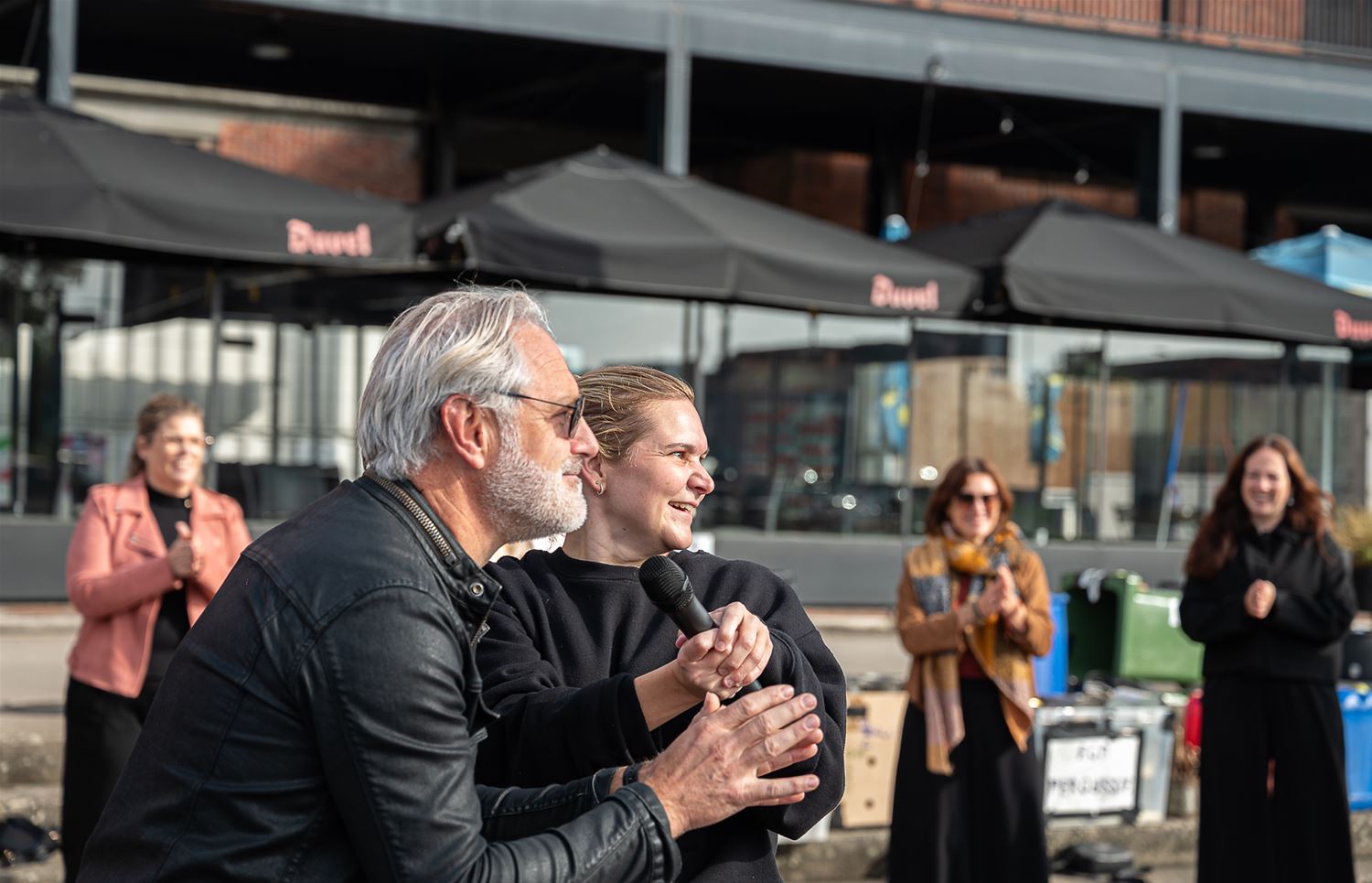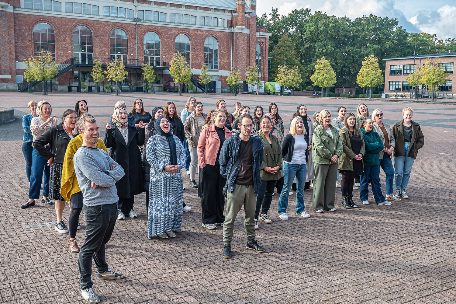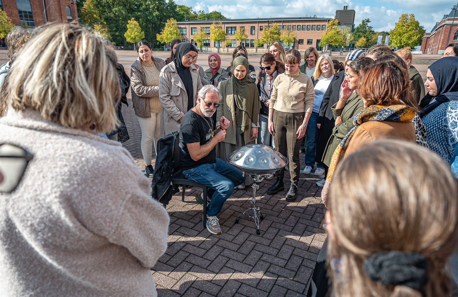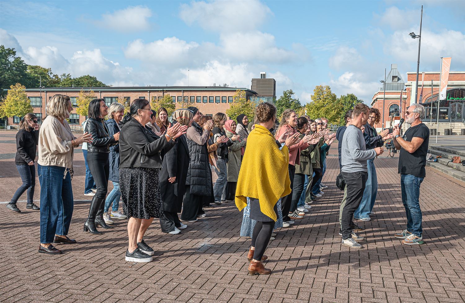 Kinderbegeleid(st)ers kunnen behoorlijk wat tamtam maken. Dat hebben ze vanmiddag bewezen op het Marktplein. Tijdens de Week van de Kinderopvang lieten ze zich horen tijdens een percussieworkshop. Met luide trom maakten ze duidelijk dat hun beroep belangrijk is voor de samenleving. Bart Braeken leerde hen tijdens de workshop hoe zij op hun beurt met eenvoudige materialen percussie kunnen aanleren bij kinderen. Maar eerst moesten ze uiteraard zelf percussie onder de knie krijgen. Dus werd er getrommeld, gedanst, gesprongen en vooral veel gelachen. En Bart verbaasde met indrukwekkende solo’s op een vuilbak, potten en pannen. (foto’s Roman Martyka)