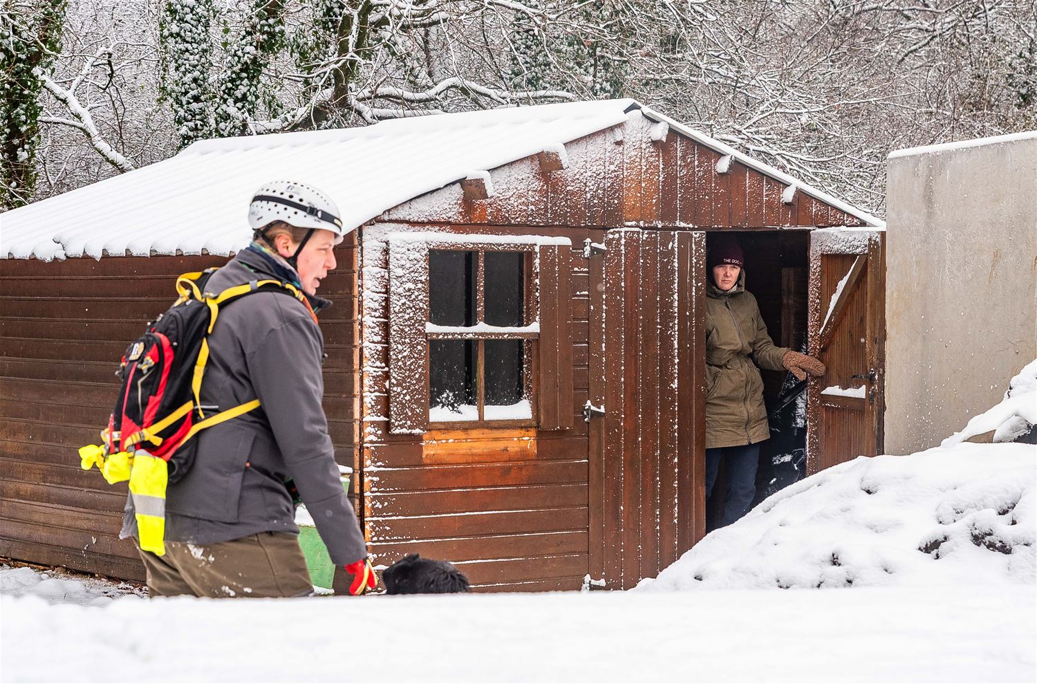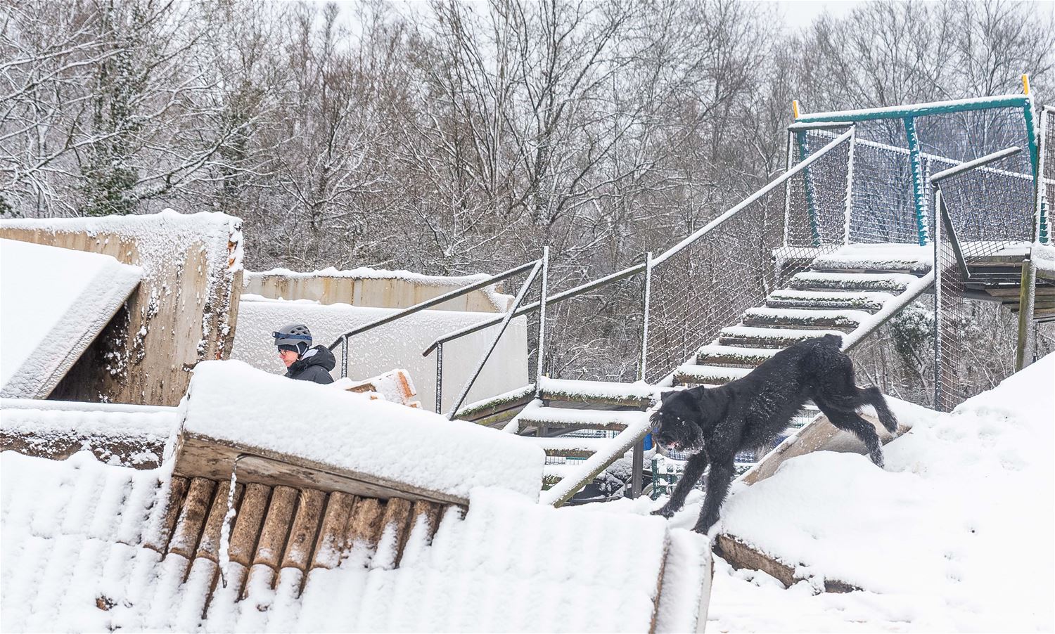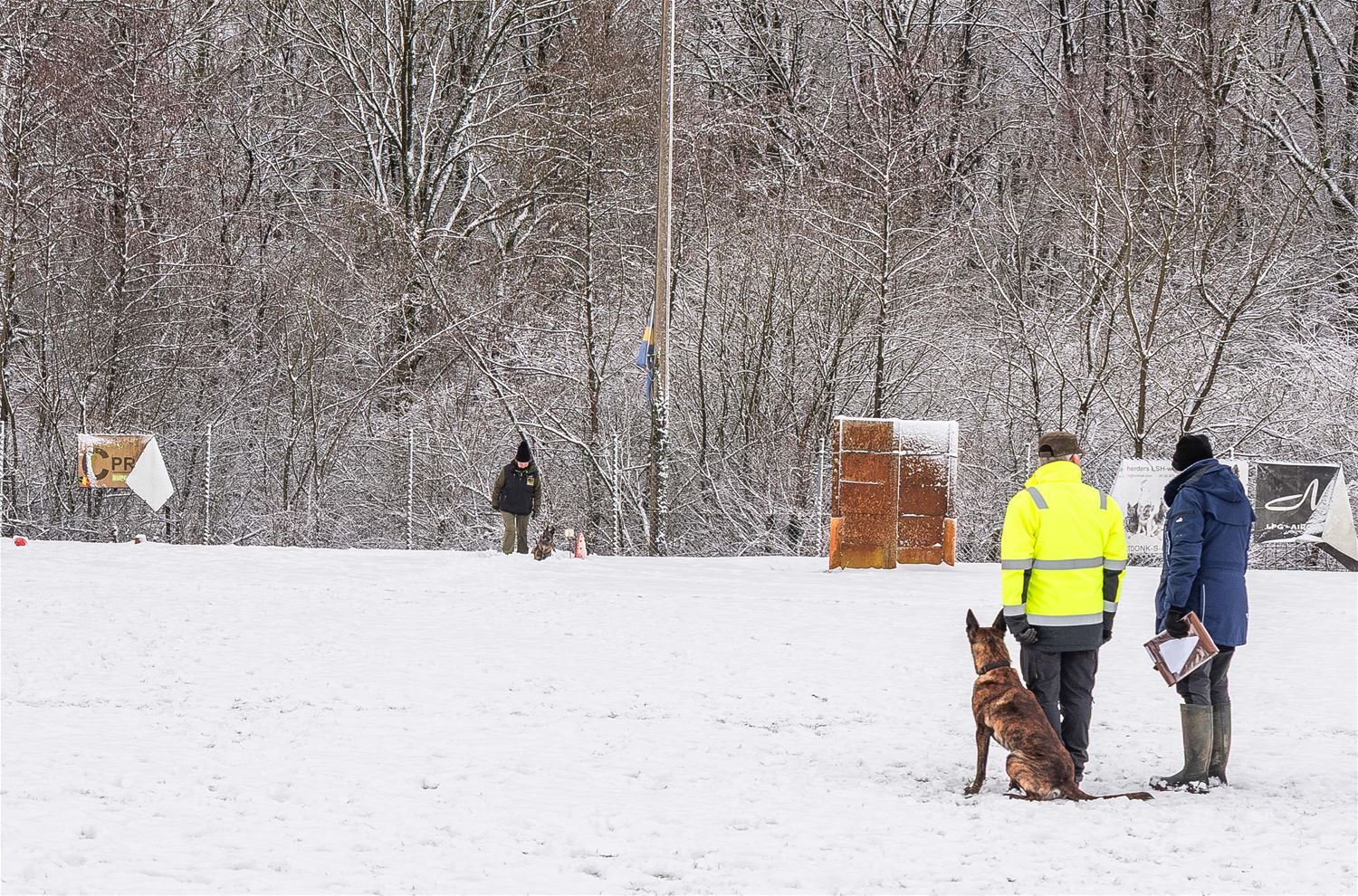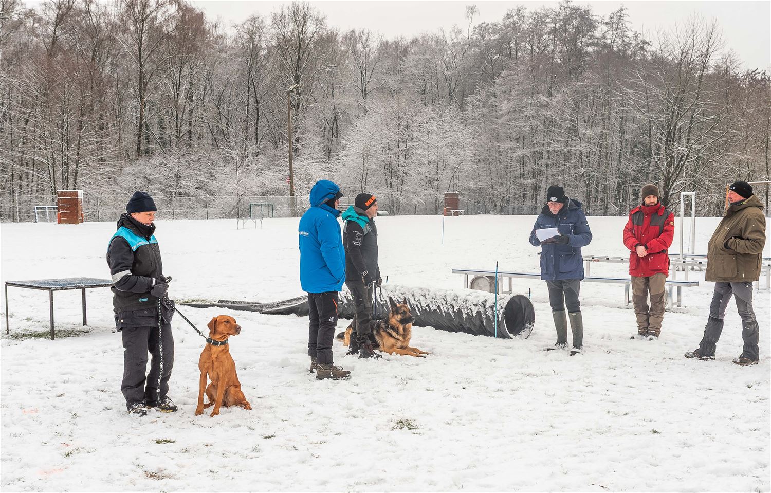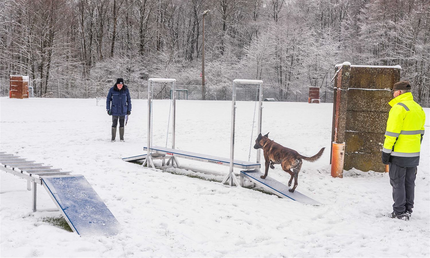 De sneeuw en de bittere koude maakten de wedstrijden voor reddingshonden vandaag bij OTV op Helzold bijzonder uitdagend. Toch lieten de getrainde honden – en hun baasjes – zich niet afschrikken om de verschillende opdrachten aan te gaan. Ze legden hun gehoorzaamheidsproeven af en toonden hun deskundigheid in het speurwerk. Daarnaast moesten ze slachtoffers opsporen zowel in het bos nabij Helzold als op een gesimuleerde puinsituatie. Jammer dat er door het weer weinig publiek was opgedaagd want de geleverde prestaties waren best indrukwekkend. Er werden ook hoge scores genoteerd door de juryleden. (foto’s Ann Jordens)