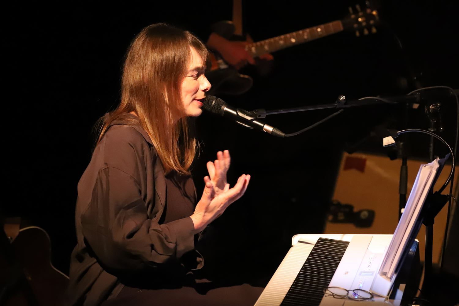 Neeka bracht vrijdagavond in CC Muze haar nieuwe programma ‘Beyond Blue’ in première. Daarin vertolkt ze allemaal songs van Joni Mitchell, een artieste waarmee ze zich altijd al nauw verbonden heeft gevoeld. (foto’s Herman Eerdekens)