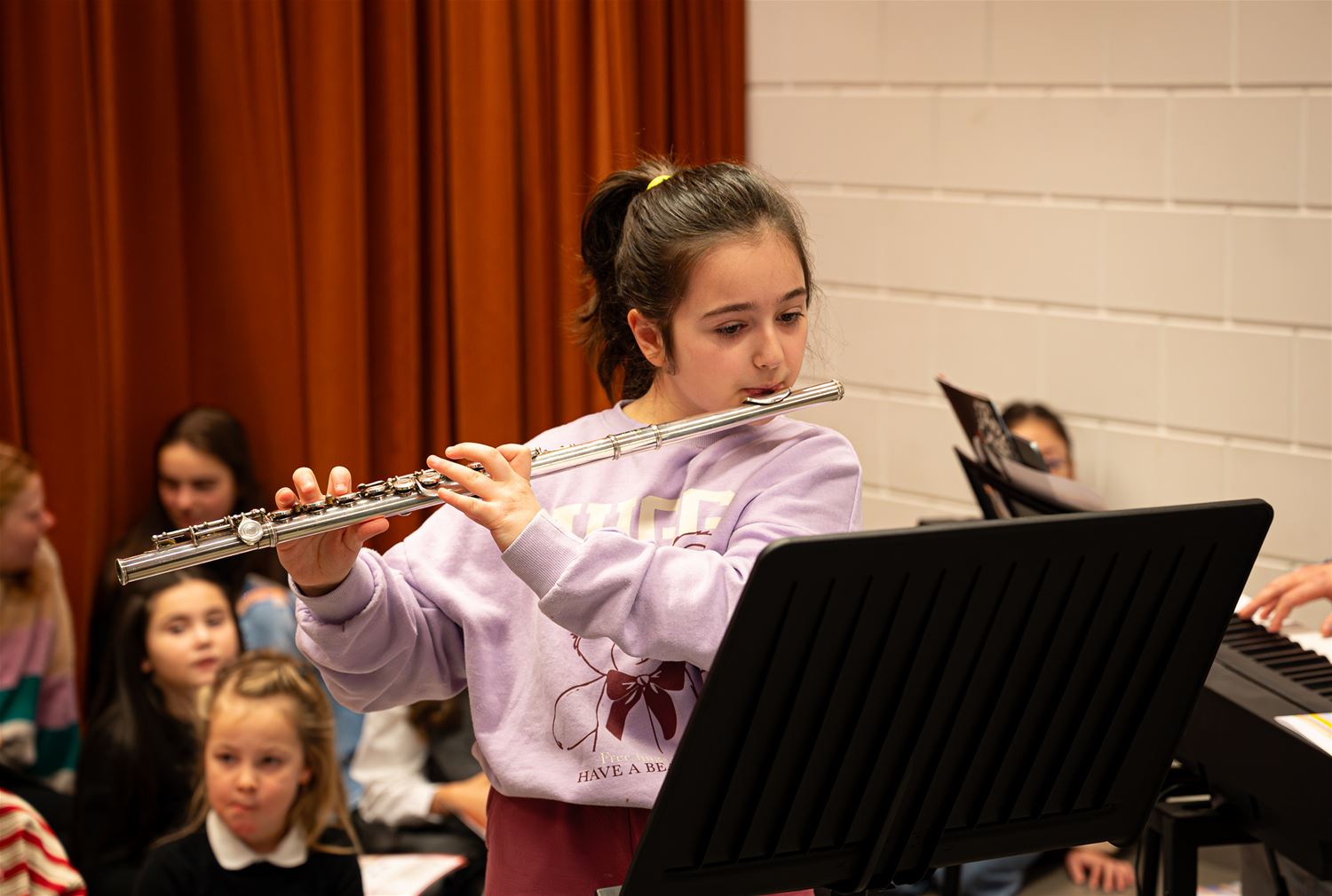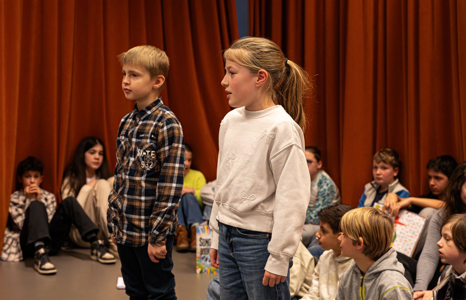 De poëzieweek kende een feestelijk moment deze voormiddag in de bibliotheek. Daar brachten leerlingen van de lokale afdeling van de Academie voor Woord en Muziek een programma rond het centrale thema ‘Metamorfose’. Ze speelden muziek, zongen, dansten en sloten af met ‘Vrolijke Vrienden’. Het zaaltje was volgelopen met vooral ouders en grootouders, en die zagen en hoorden dat het goed was. (foto’s Roman Martyka)