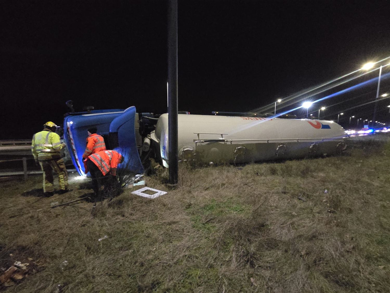 Rond kwart over 7 vanavond is op de E314 tussen Viversel en Lummen een ongeval met een vrachtwagen gebeurd. De snelweg richting Lummen is daardoor momenteel volledig versperd en dat zou nog wel een tijdje kunnen duren. Brandweer, ambulance en politie zijn ter plaatse. UPDATE Ter hoogte van het Klaverblad is aan de kant van de middenberm een tankwagen gekanteld, die ligt op zijn zijflank. Al het verkeer op de E314 - A2 in de richting van Lummen moet de snelweg verlaten via knooppunt Lummen. Van daaruit de omleiding volgen tot oprit 25 Halen, waar iedereen de snelweg weer kan oprijden. UPDATE Drie uur na het ongeval is de tankwagen met zware takelwagens rechtgetrokken. Het zal evenwel nog een tijdje duren voor de snelweg helemaal open is want de brandweer moet het wegdek nog reinigen. De tankwagen was geladen met plastic bolletjes. Twee gewonden zijn naar het ziekenhuis gebracht, de vrachtwagenchauffeur en een persoon uit een auto die door de vrachtwagen was meegesleurd.