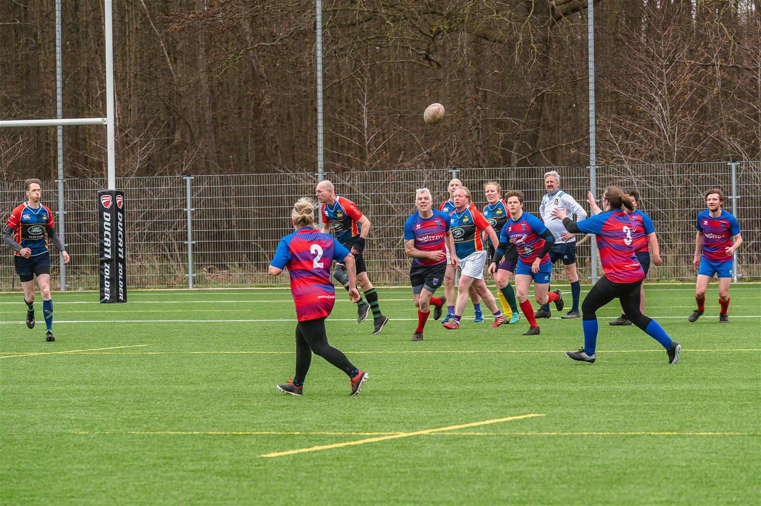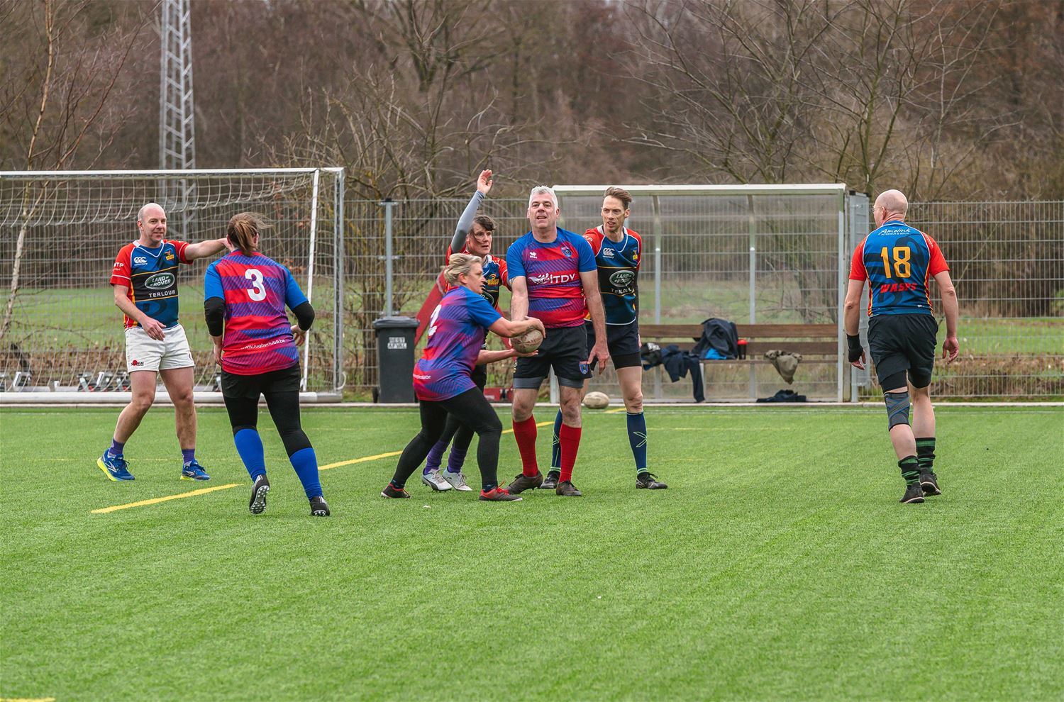 Zowel voor de spelers als de toeschouwers van rugbyclub RC9 was het even wennen vandaag, tijdens de allereerste partij T1-Rugby. Wageninge, de Nederlandse kampioen in deze softversie van het klassieke rugby kwam een demowedstrijd tegen een lokale selectie spelen. Daarbij wordt er niet meer geduwd en getrokken en al zeker niemand meer tegen de vlakte gewerkt. Spelers tikken elkaar aan om de bal te veroveren. Een ideaal spel voor spelers die het niet zo graag ruw hebben of die proberen blessures te vermijden. Of we hier een competitievariant moeten verwachten, weten we niet maar het was vandaag wel een ludiek gebeuren op de Vrijheidsite. (foto’s Ann Jordens)