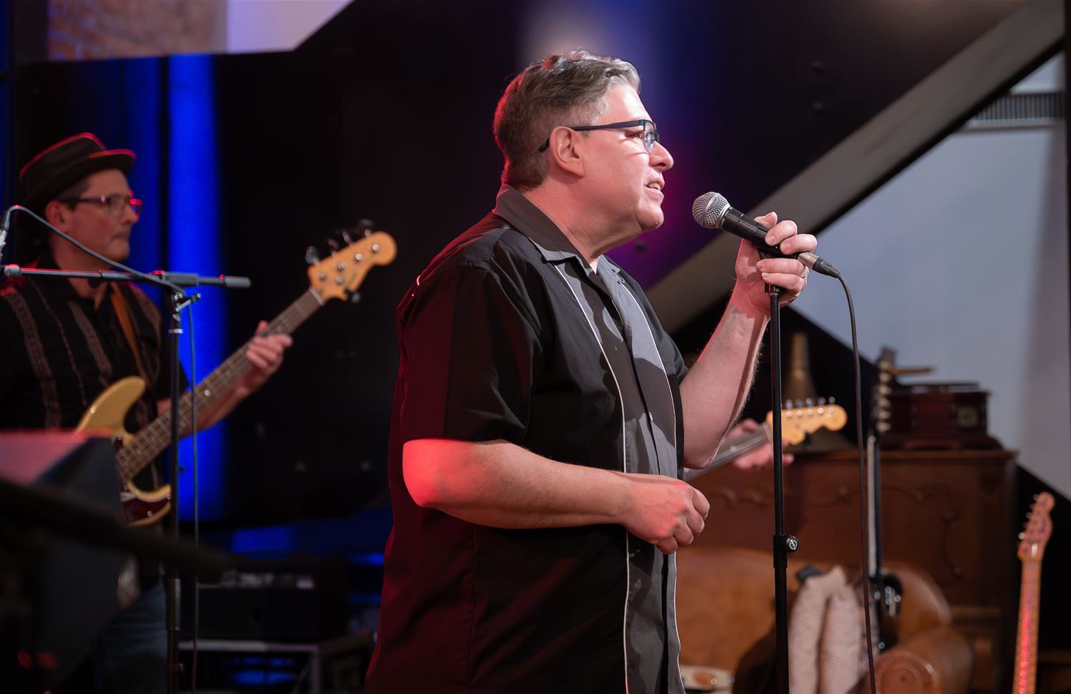 The Dibs speelde zondagavond in het MuzeCafé, niet zomaar een optreden maar de voorstelling van de gloednieuwe CD ‘Just for You’. Het album is pas eergisteren uitgebracht op Naked Records by Donor Productions. Het bevat een serie stevige nummers die een pak fans vanavond live in het café konden beleven. Met dit repertoire – en zijn eerdere nummers – kan The Dibs de volgende maanden podia en festivals afschuimen. In april zijn ze trouwens nog eens te gast bij de Sunday Evening Blues in hetzelfde MuzeCafé. Daar zorgde Rocco Di Turi vanavond voor de juiste temperatuur en ambiance voor de band zelf het podium betrad. (foto’s Roman Martyka)