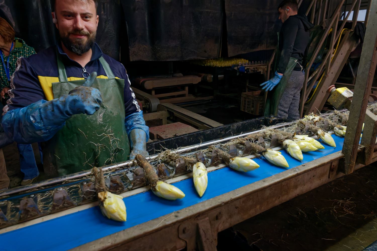 NEOS Heusden-Zolder bezocht witloofbedrijf Bruyninckx in Messelbroek bij Scherpenheuvel. Na de ontvangst met een lokaal appelsap of witloofbiertje werd het gezelschap op sleeptouw genomen door oprichter Frans Bruyninckx. Hij deed alle stappen in de huidige witloofteelt uit de doeken: aankoop van wortelen in Nederland, opslag in koelcellen, in trekbakken: bakken waarin de wortels rechtop staan (-1 graad), opkweken van witloof in geklimatiseerde cel, de ‘forcerie’, gedurende ongeveer 20 dagen, in volledige duisternis. Daarna worden de koppen van de wortel gesneden, zuiver gemaakt en verpakt voor verkoop. Volgens de teler hangt de smaak van witloof vooral af van de variëteit, niet van grond- of hydrocultuur. Na de proeverij was iedereen overtuigd en vertrok met een doos witloof huiswaarts. Er zal in heel wat huizen witloof al dan niet met hesp en kaassaus op het menu staan. (foto’s Robrecht Froyman)