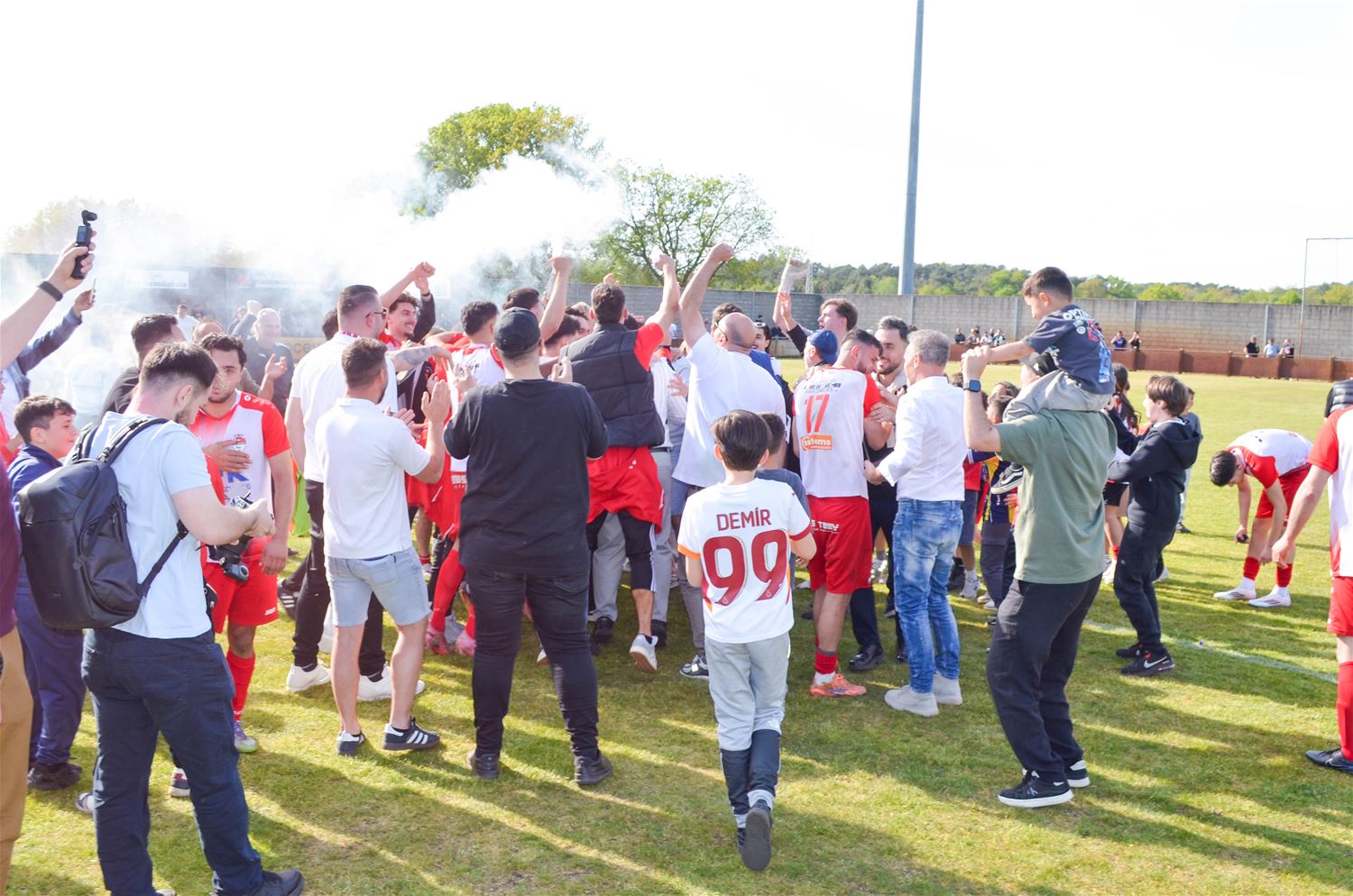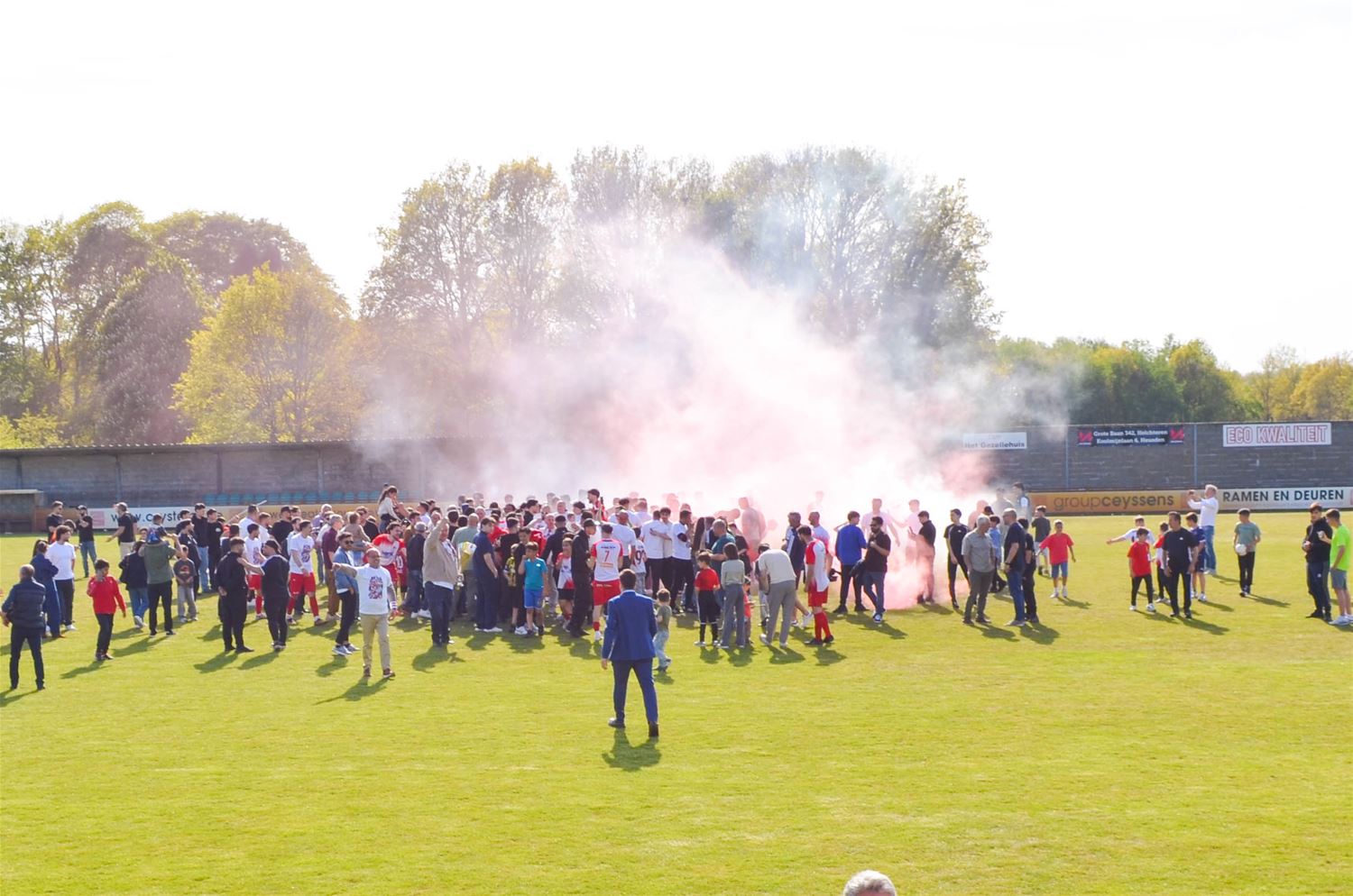 FC Anadol is kampioen in tweede provinciale B en speelt volgend jaar in eerste. Een massa supporters was vandaag afgezakt naar het stadion van KVV Heusden-Zolder waar Anadol zijn laatste en beslissende match van het seizoen afwerkte. Ze zagen hoe de bezoekers gretig op zoek gingen naar de verlossende doelpunten. Na 14 minuten bracht Ulupinar Anadol op voorsprong, vijf minuten na de rust kon Erciyas verdubbelen en het slotakkoord was voor Bayaktar in de laatste minuut. Het ging er bijzonder pittig aan toe. Oztürk werd al in de eerste helft van het veld gestuurd en ook Erciyas pakt na zijn doelpunt een tweede gele kaart, zodat Anadol met 9 man de match eindigde. Veel discussies dus maar met een 0-3 uitslag, was er alleszins geen discussie over de winst en dus over de titel. Na jaren van werken en net niet, promoveert de club van de Lindeman dus naar eerste provinciale. Moet het nog gezegd dat de massa supporters na het eindsignaal een groot feest inzetten. (foto's David Amgad)88383