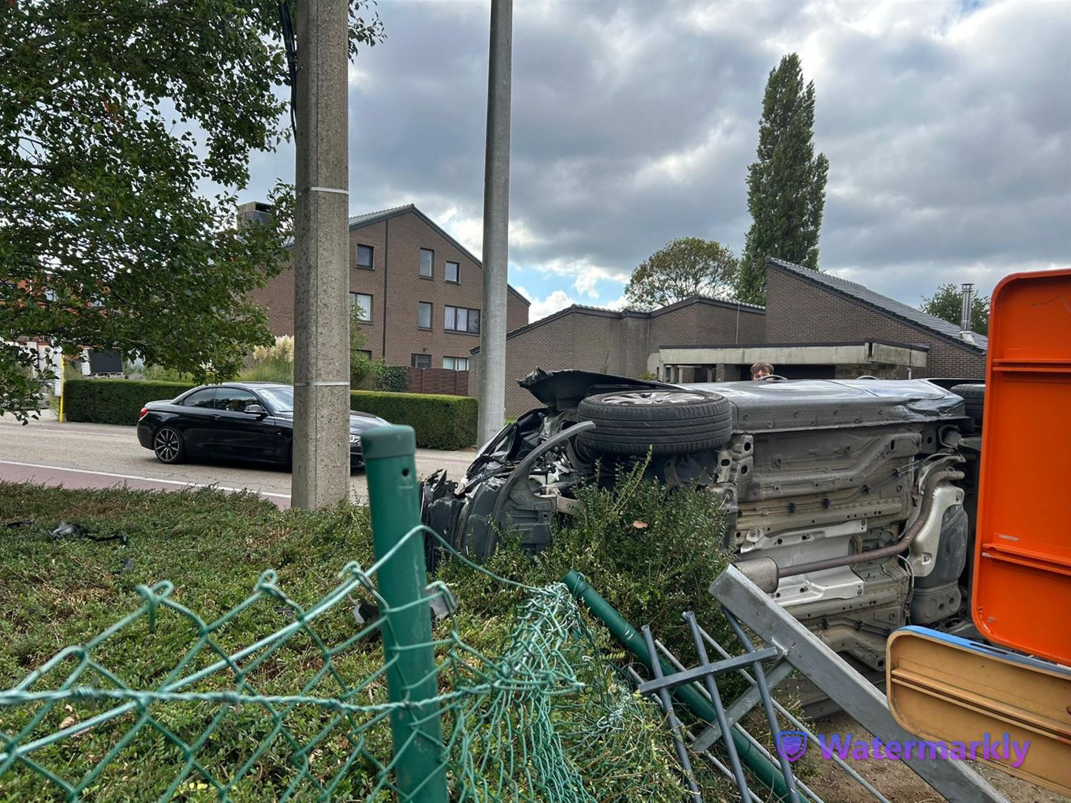 Auto belandt op zijn flank na crash in Sluisbamd