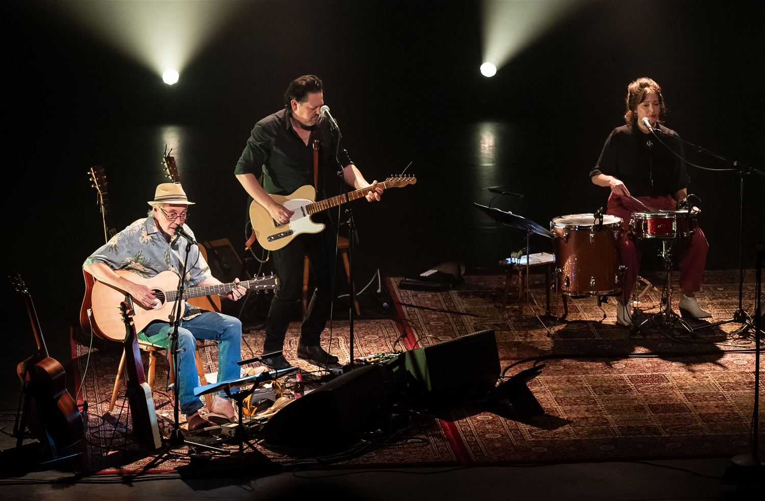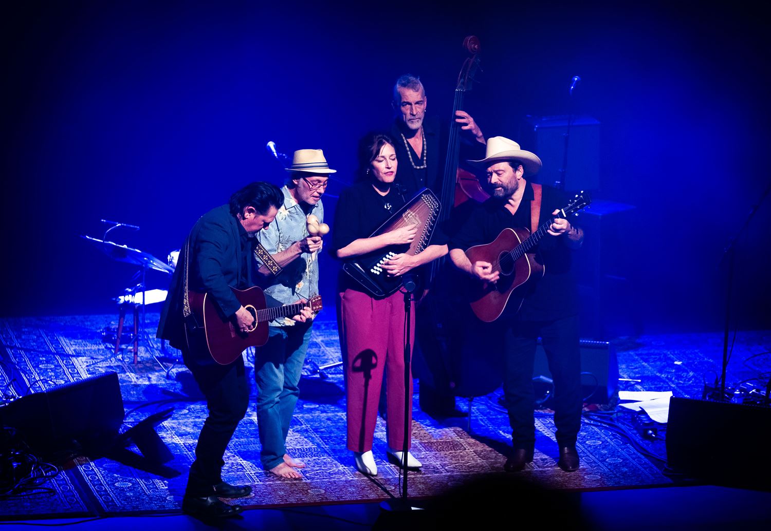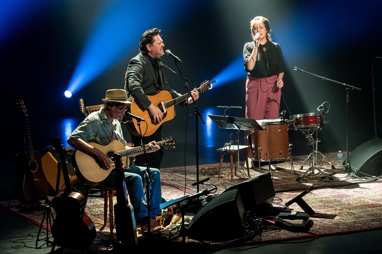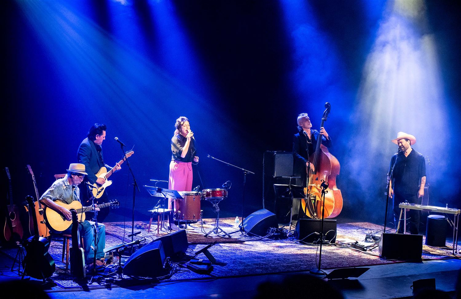 Schitterend optreden zaterdagavond in de Muzeschouwburg. Daar bracht Country Mavericks de première van ‘For the sake of the song’. Ze puurden daarbij uit het repertoire van de ‘outlaws’ van het countrygenre, muzikanten getekend door de uitspattingen van het artiestenbestaan en de zwaarte van het leven. Toch leverden bijvoorbeeld Willie Nelson, Guy Clark, Johnny Paycheck, Kris Kristofferson, Loretta Lynn en Patsy Cline een repertoire af dat schipperde tussen sentimenteel, ruig en swingend. Ook al was het een première, het leek alsof het gezelschap hiermee al lang toerde, topprestatie van een stel multi-instrumentalisten en vocaal indrukwekkend in harmonie. Met Bjorn Eriksson, Nathalie Delcroix, Piet De Pessemier, Tomas De Smet en Patrick Riguelle stonden dan ook geen groentjes op het podium. Met de nodige humor lijmden ze hun programma aan elkaar. Het publiek loonde hen met een staande ovatie. Wij hebben ons weer met het countrygenre verzoend. (foto’s Ann Jordens)86462