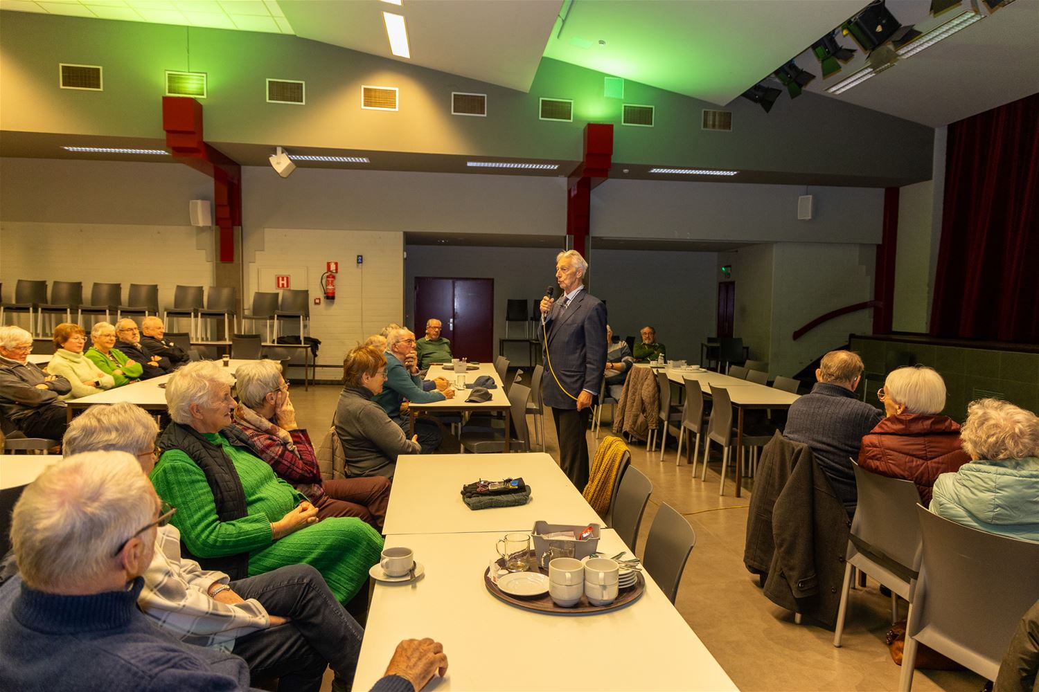 Veel volk vandaag bij Raak Overdag waar baron Claude de Villenfagne de Vogelsanck te gast was. De baron heeft een heel verhaal over de oorsprong van de familie de Villenfagne maar ook over het kasteel Vogelsanck waarvan de geschiedenis teruggaat tot de 12de eeuw. De familie de Villenfagne is een oude adellijke familie. Ze werd in 1741 eigenaar van het kasteeldomein. De waterburcht is in de loop der eeuwen uitgebouwd in verschillende bouwstijlen, wat het tot één van de merkwaardigste kastelen van de lage landen maakt. Vogelsanck was historisch een ‘heerlijkheid’ met een zelfstandige status waar van delen van de huidige gemeenten rond ons deel uitmaakten. De verschillende baronnen speelden een rol in Zolder, waar onder meer 5 van hen de burgemeesterssjerp droegen. Zo kennen velen nog baron Henri – de vader van baron Claude - die in 2015 op 99-jarige leeftijd overleed. Bijzonder aan Vogelsanck is ook het Engels park van zowat 5 ha, dat ook een arboretum is met bijzondere bomen. Dat het kasteel en de adel nog tot de verbeelding spreken, bleek ook uit de vele vragen die de baron na de pauze kreeg voorgeschoteld. Volgende week gooit Raak Overdag het over een heel andere boeg en gaan ze met zijn alle darten. (foto’s Joseph Bams)87030