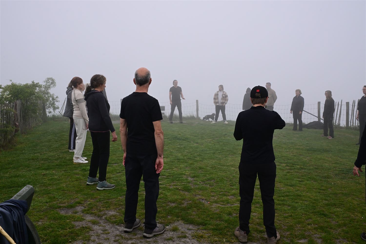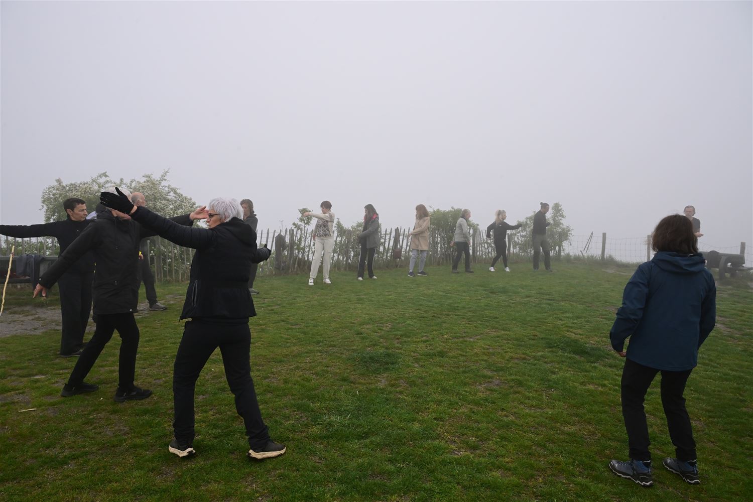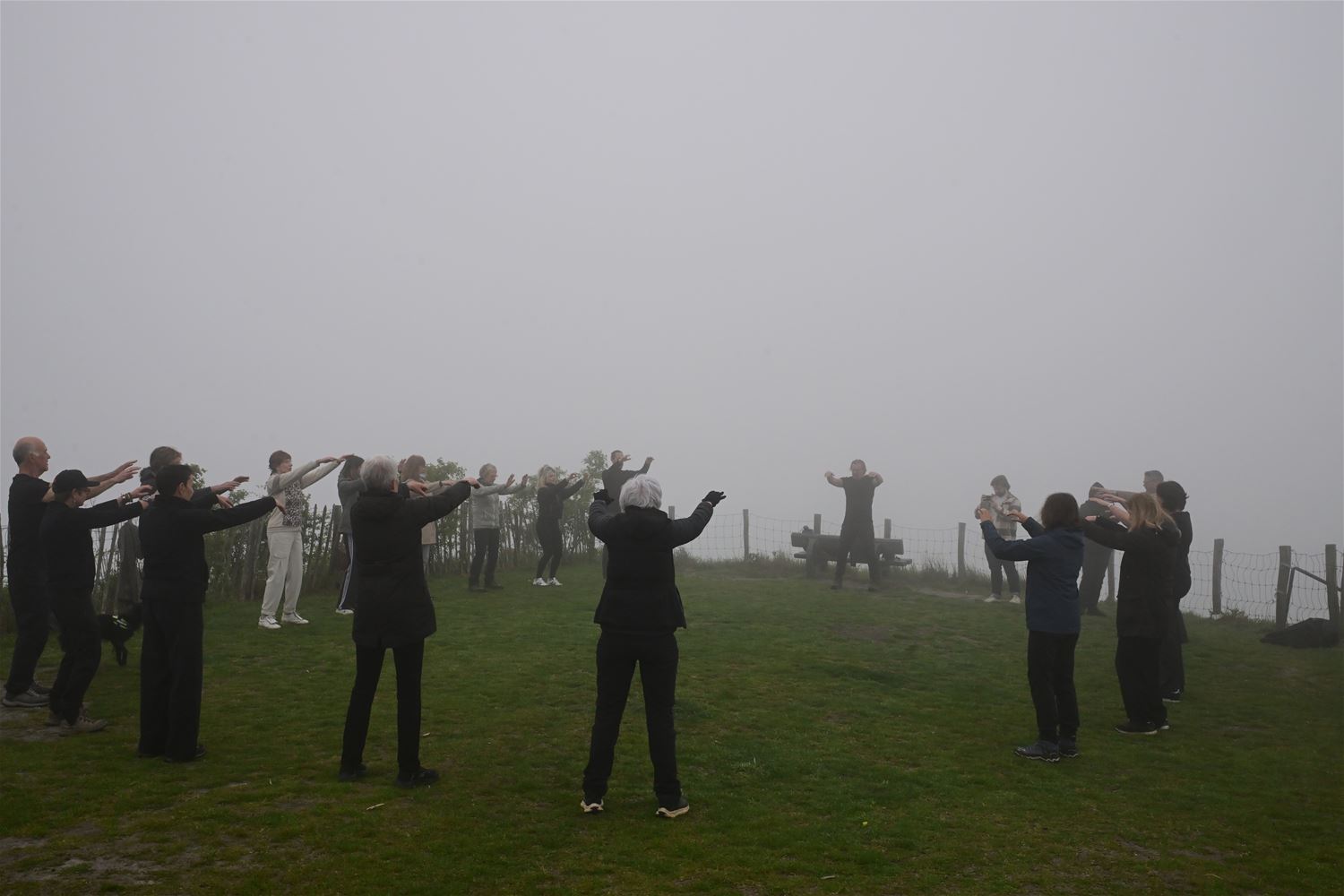 Vanmorgen – op wereld Tai Chi dag – nam de Heusdense leraar Danny Baerts zijn leerlingen en alle geïnteresseerden mee de mijnterril van Beringen op. Na een wandeling deden ze daar een reeks tai chi oefeningen. De zon was niet van de partij maar de mist hulde het geheel in een speciale sfeer. Ze maakten daarmee deel uit van de wave, die op hetzelfde moment over zowat heel de wereld werd gevormd door tai chi beoefenaars. Alsof er één groot zen-moment over de aardbol waaide … (foto’s Patrick Cosemans)88364