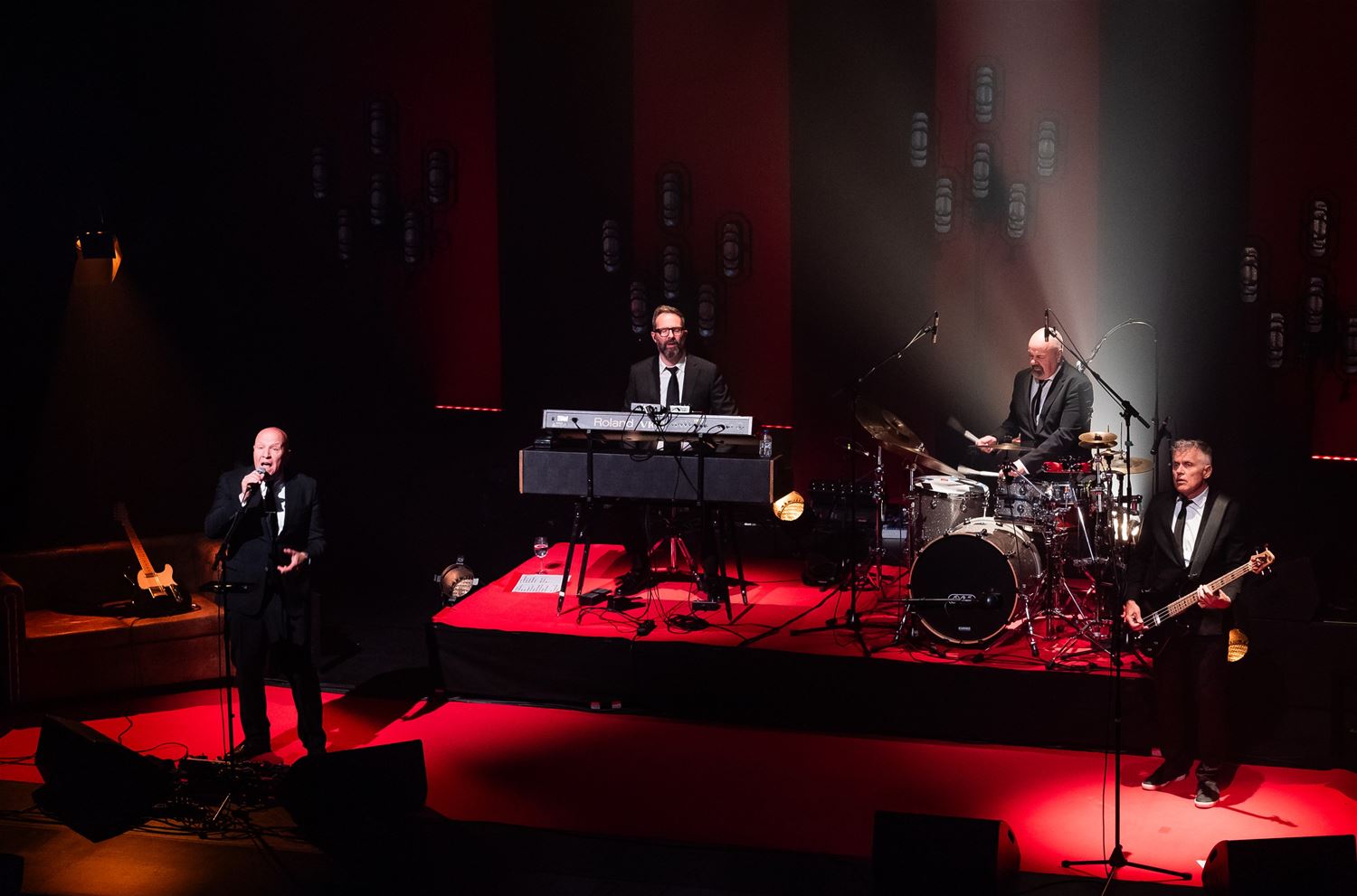 Voor een uitverkochte Muze-schouwburg bracht Frank Vander Linden met ‘De Mens’ het programma ‘Late Night’. Dat is een mix van nieuwe nummers uit hun 15de album ‘Liefde en andere problemen’ en bekend werk. Het concept heeft wat weg van een late night talkshow: zwarte maatpakken, zetels en gedempt licht. Tussen de nummers door babbelt Vander Linden dan ook over liefde en andere problemen. Op zijn manier, en met ruim 30 jaar podiumervaring lukt dat probleemloos. (foto’s Ann Jordens)88372