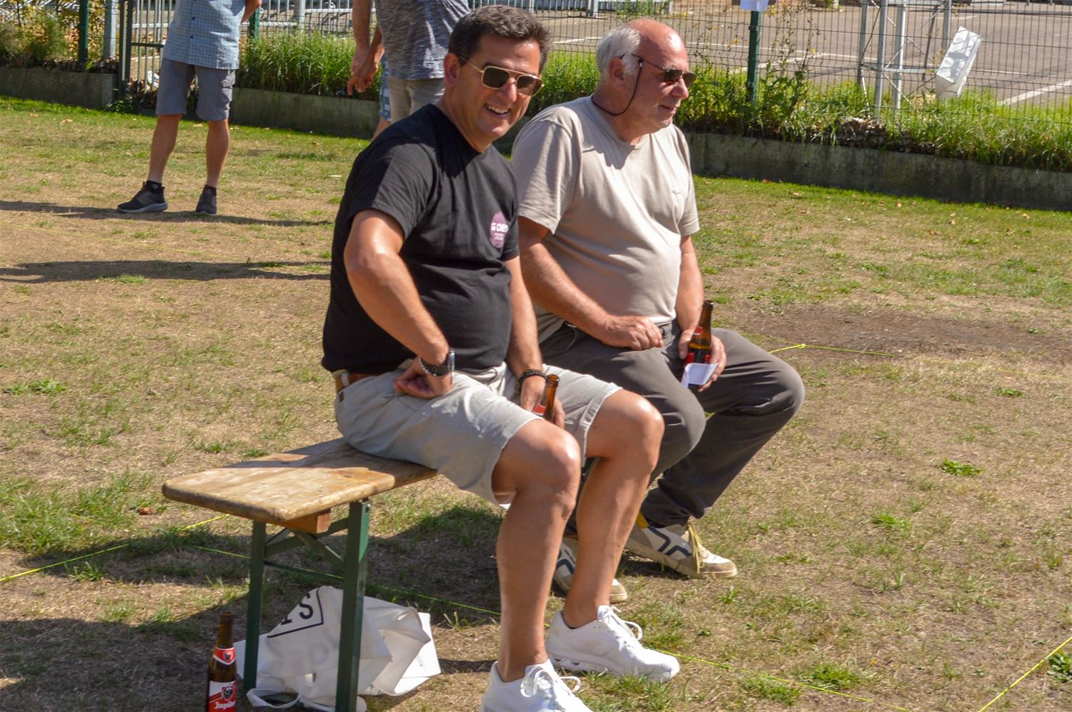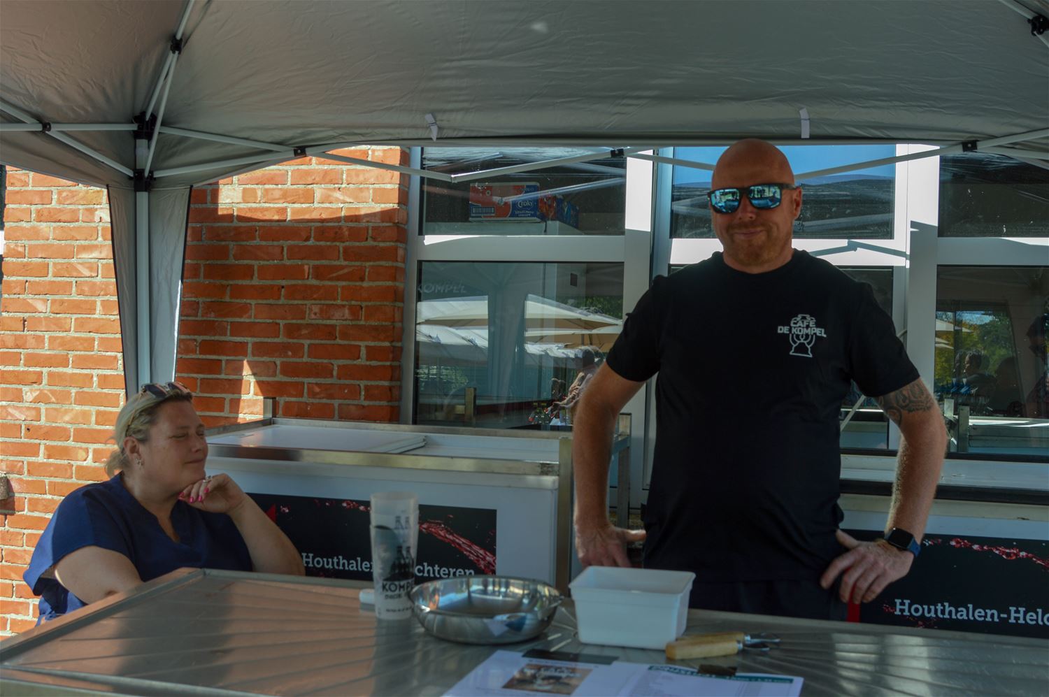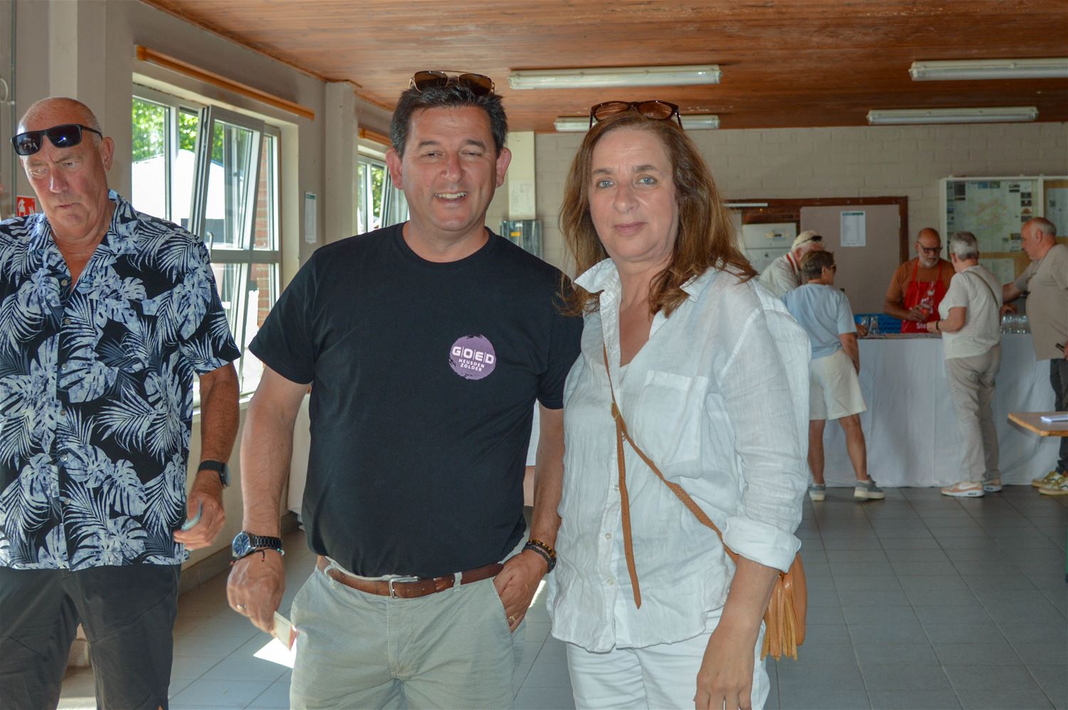 ‘Rondje Bestuur’ streek vandaag neer in Berkenbos. Ieder jaar rond de zomer trakteert het College van Burgemeester en Schepenen de inwoners op enkele drankjes tijdens een receptie. Daarbij worden de kerkdorpen in een beurtrol aangedaan, en de traktatie sluit aan bij een plaatselijk evenement. Vandaag mochten burgemeester en schepenen dus enkele uren pintjes en frisdrank serveren tijdens Berkenbos Leeft. En ’t was dorstig weer, dus de traktatie werd gesmaakt. Maar voor alle duidelijkheid, het was een traktatie vanuit de gemeente, niet vanuit GOED zoals de t-shirts misschien de indruk konden wekken. Dat was evenwel om deel te nemen aan het Kubb-tornooi, waarin ze het ook goed probeerden te doen. (foto’s David Amgad)86281