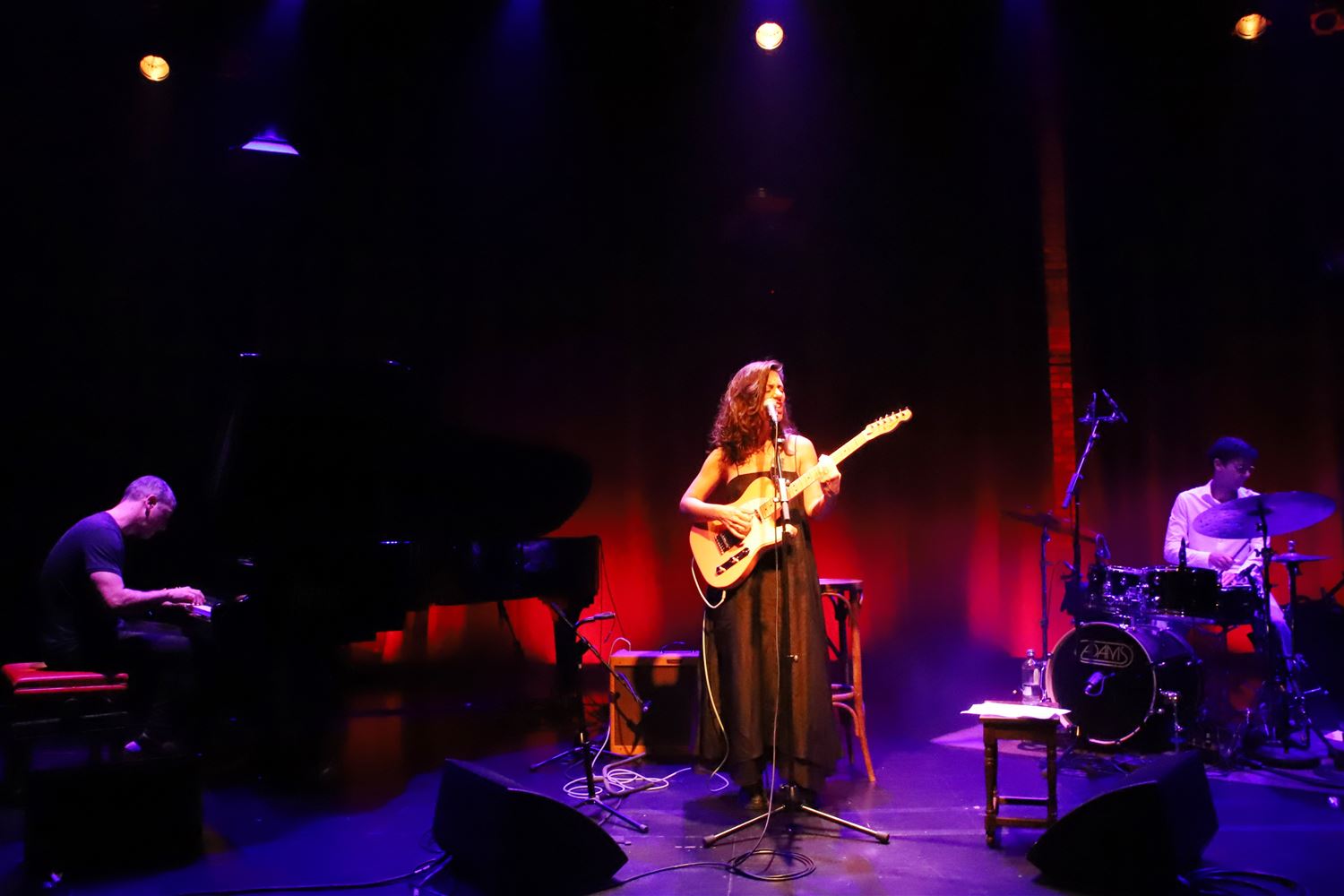 Het Anna Setton Trio bracht vrijdagavond Brazilliaanse jazz en bossa nova naar CC Muze. De bijzondere stem van Anna Setton, haar subsiele gitaarspel, de pianoklanken van Edu Sangirardi en het geroffel van Gabriel Moraes op de drums toverden een aparte sfeer in de zaal. (foto’s Herman Eerdekens)87072