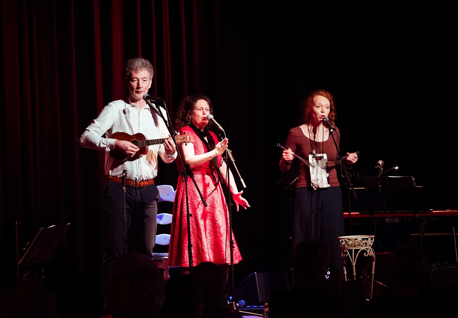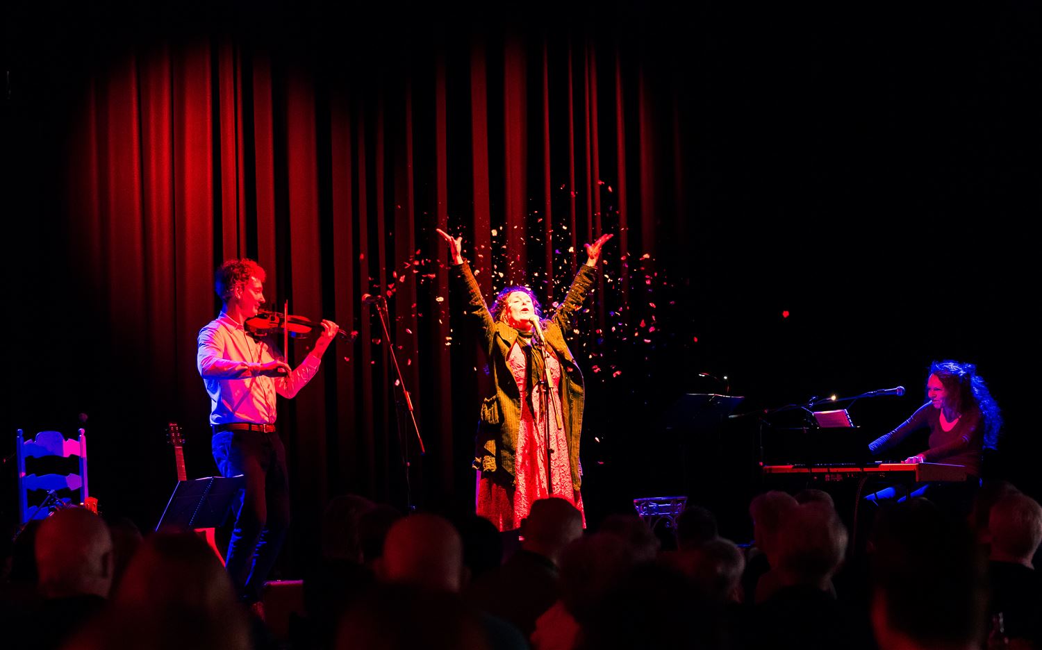 De balzaal van CC Muze was deze namiddag helemaal volgelopen voor Les Triadours. Zangeres Mireille Vaesen, haar echtgenoot en strijker Sam Pasternak en pianiste-accordeoniste Martine de Kok brachten nummers van Edith Piaf en Jacques Brel, twee grootheden uit de Franstalige chansonwereld. Piaf werkte zich van de straat naar een wereldberoemde carrière, Brel deed hetzelfde vanuit Brussel. Het trio liet de aanwezigen genieten van klassiekers zoals La Vie en Rose, Marieke, Ne me Quitte Pas, maar ook enkel minder bekende werken. Mireille Vaesen bracht met haar prachtige stem Piaf en Brel tot leven. Een heerlijke namiddag die eindigde met … koffie en gebak. (foto’s Ann Jordens)87749