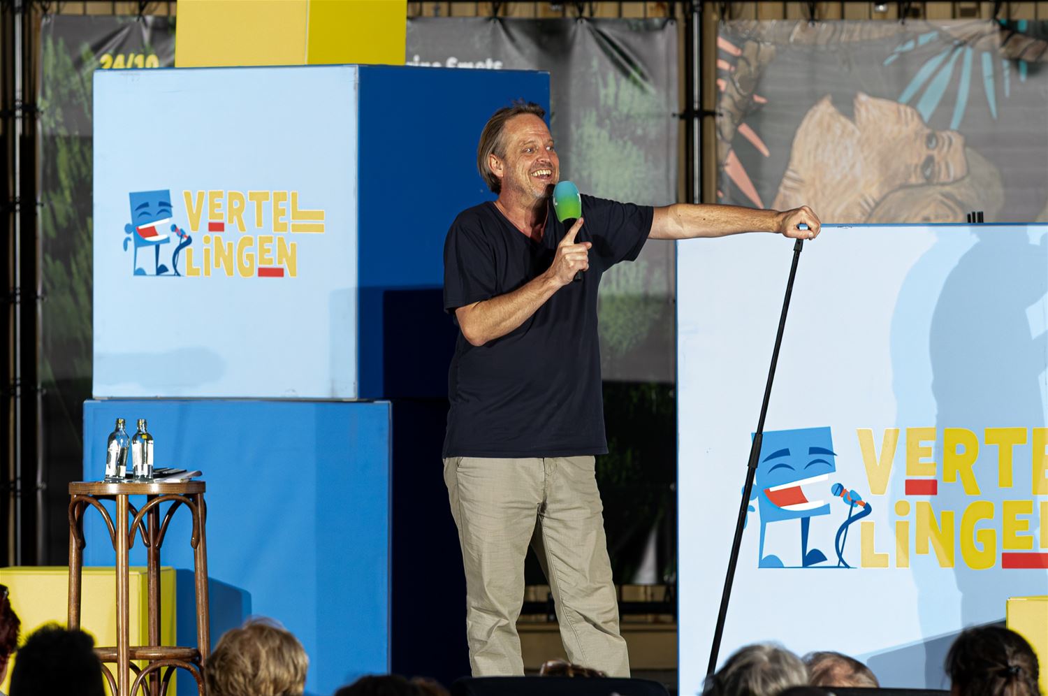 Het Marktplein was vanavond volgestroomd voor de TVL-Zomervertelling. Naar schatting 2800 comedy-liefhebbers hadden hun vouwzeteltje neergepoot voor een avondje lachen met een pintje erbij. Rik Bosmans mocht het publiek alvast op de juiste temperatuur brengen – al viel dat laatste nogal mee op deze nazomerse avond – en na de nodige voorzetten was het aan Bas Birker om iedereen op sleeptouw te nemen met zijn eigen gevoel voor humor. Het sloeg aan bij de meerderheid van de aanwezigen, die de komende maanden de comedy weer zullen moeten opzoeken in schouwburgen en achterzaaltjes. (foto’s Roman Martyka)86150