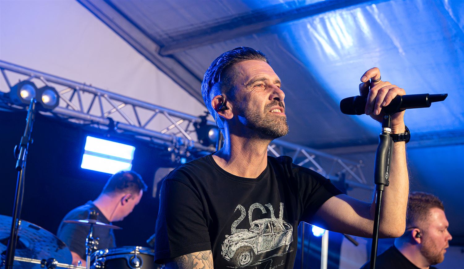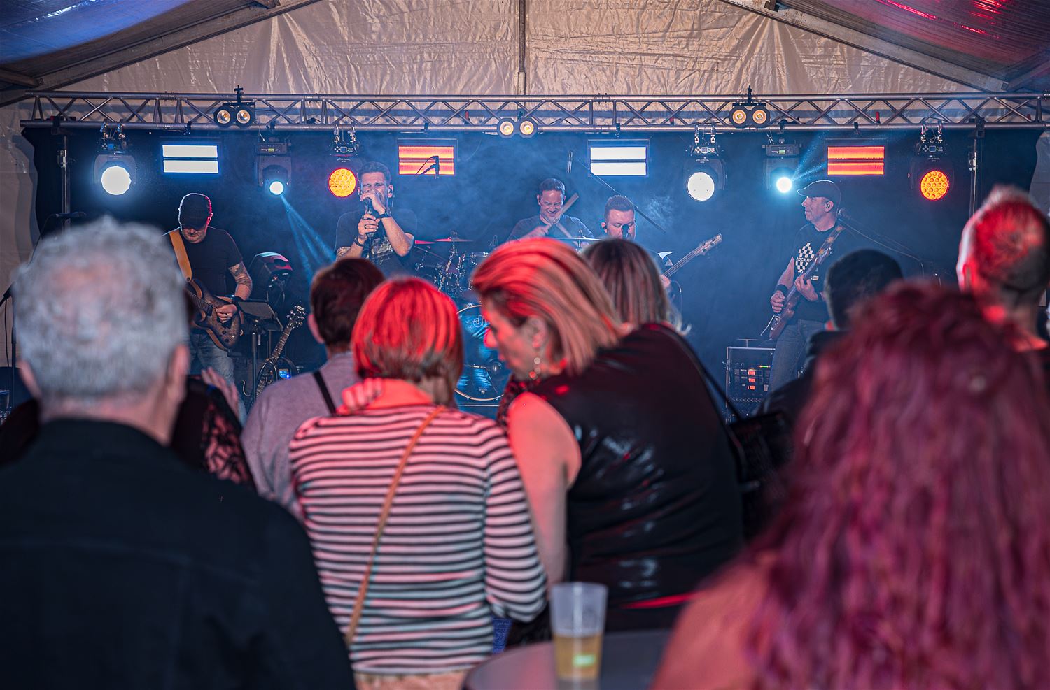 Zaterdagavond organiseerden De Slamridders 'Live in Heusden' in de feesttent. De coverband Flashback reeg vol energie en overgave de hits aan elkaar. Voor en na het optreden probeerde een dj het publiek in beweging te houden. Sommigen leken zich wat te sparen voor de stoet van zondag, (foto's Roman Martyka)88249