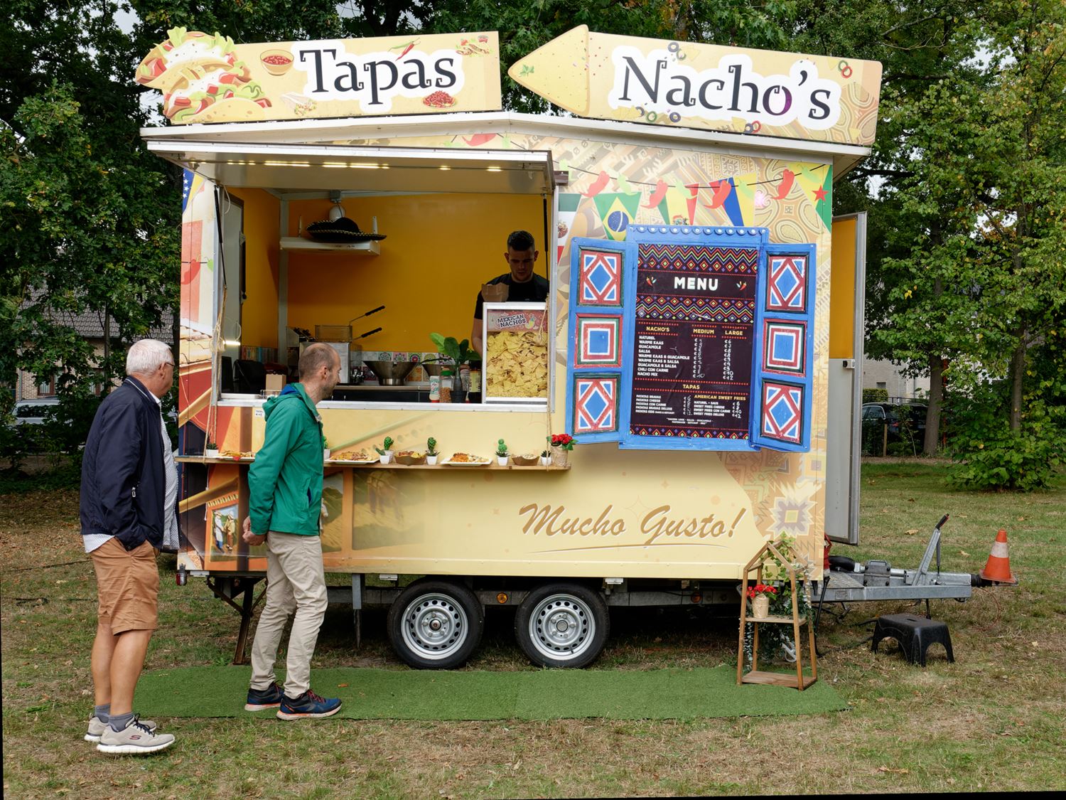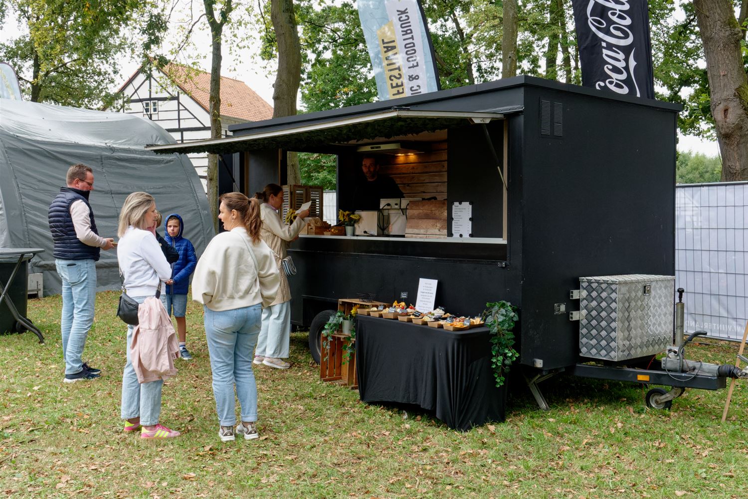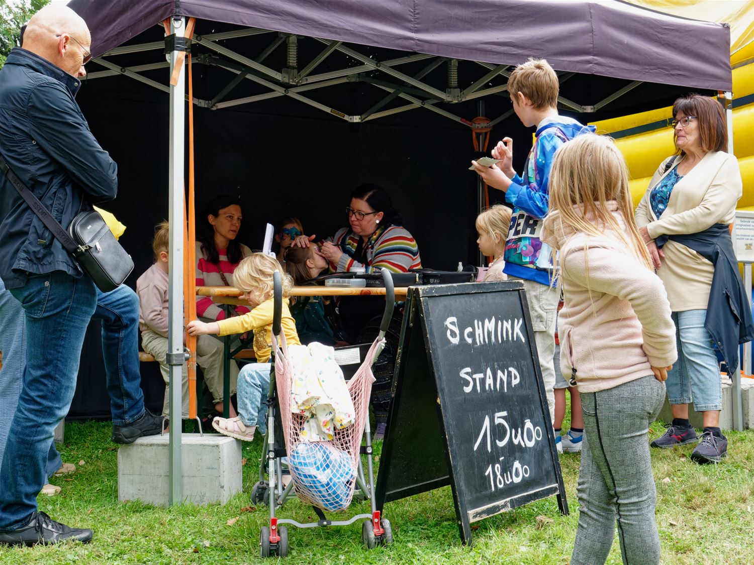Gisteren kon het foodtruckfestival Chefs on Wheels op Domein Bovy nog genieten van warm weer, vandaag was het al heel wat wisselvalliger. Kort na de middag was het kalm en kwam het festival langzaam op gang. Later op de middag kwam er wel meer volk afgezakt, hadden de food- en drinkstandjes wel werk om handen, terwijl ook de kinderschmink populair bleek. Toen bovendien de band Andersom zijn klanken door de boxen begon te blazen, kwam de sfeer er helemaal in en werd ook de kortstondige regen vergeten. Al zijn er de voorbije jaren ongetwijfeld betere edities geweest. Je kunt er nog terecht tot 21 uur vanavond. (foto’s Robrecht Froyman)86400