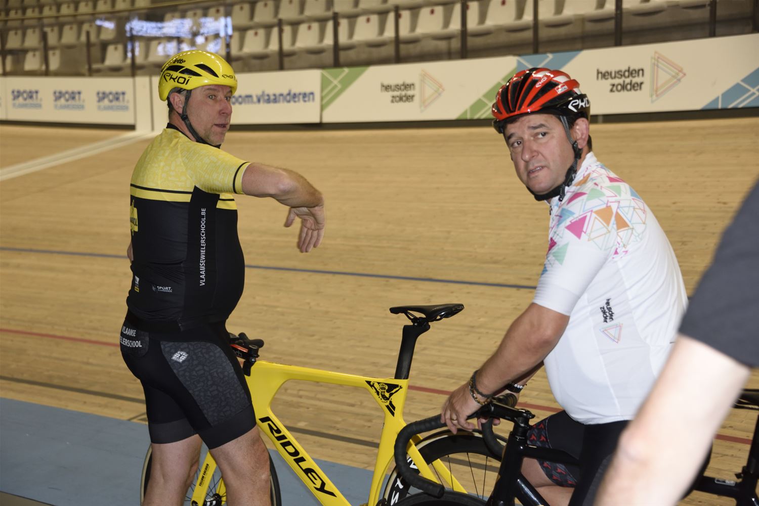 Voor de gasten uit partnerstad Brilon stond er deze namiddag een verrassing op het programma. Ze werden uitgenodigd om een aantal rondjes op de piste van de Velodroom te rijden. Daarbij werden ze deskundig begeleid door Marc Wauters en ook burgemeester Mario Borremans die ondertussen al veel rondes op zijn teller heeft staan. Voor de Duitse gasten was het alleszins een spannende en sportieve ervaring. (foto’s Roger Convents)87150