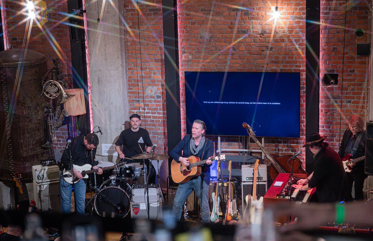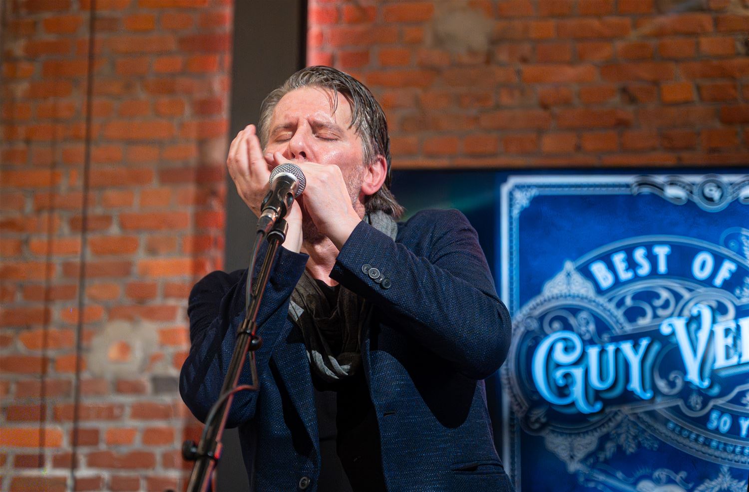 Guy Verlinde wordt 50 jaar en vierde dat in het MuzeCafé met een concert. Het werd een avond vol blues, roots en americana. Hij kon rekenen op de steun van zijn uitstekende muzikanten. Het concert dreef vooral op de guitar-power, sommige nummers werden zelfs met 4 gitaren gespeeld. Het dreef de sfeer ten top. (foto’s Roman Martyka)88229